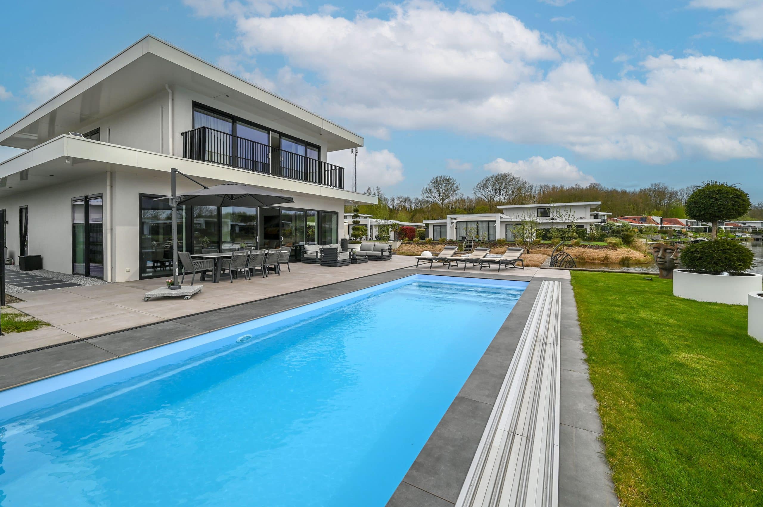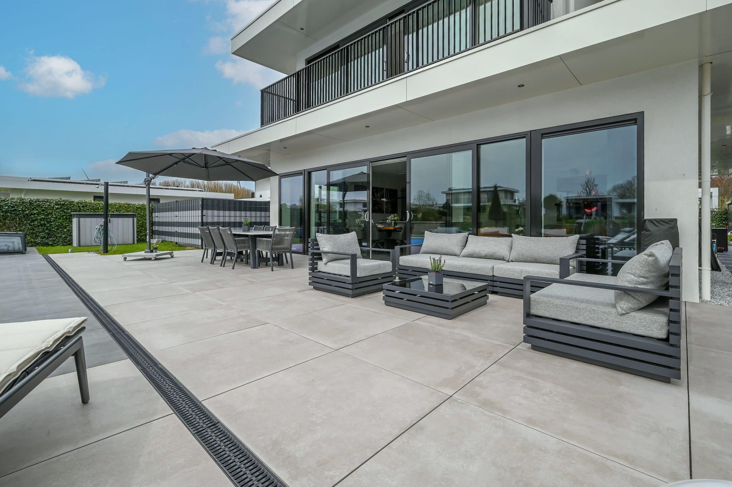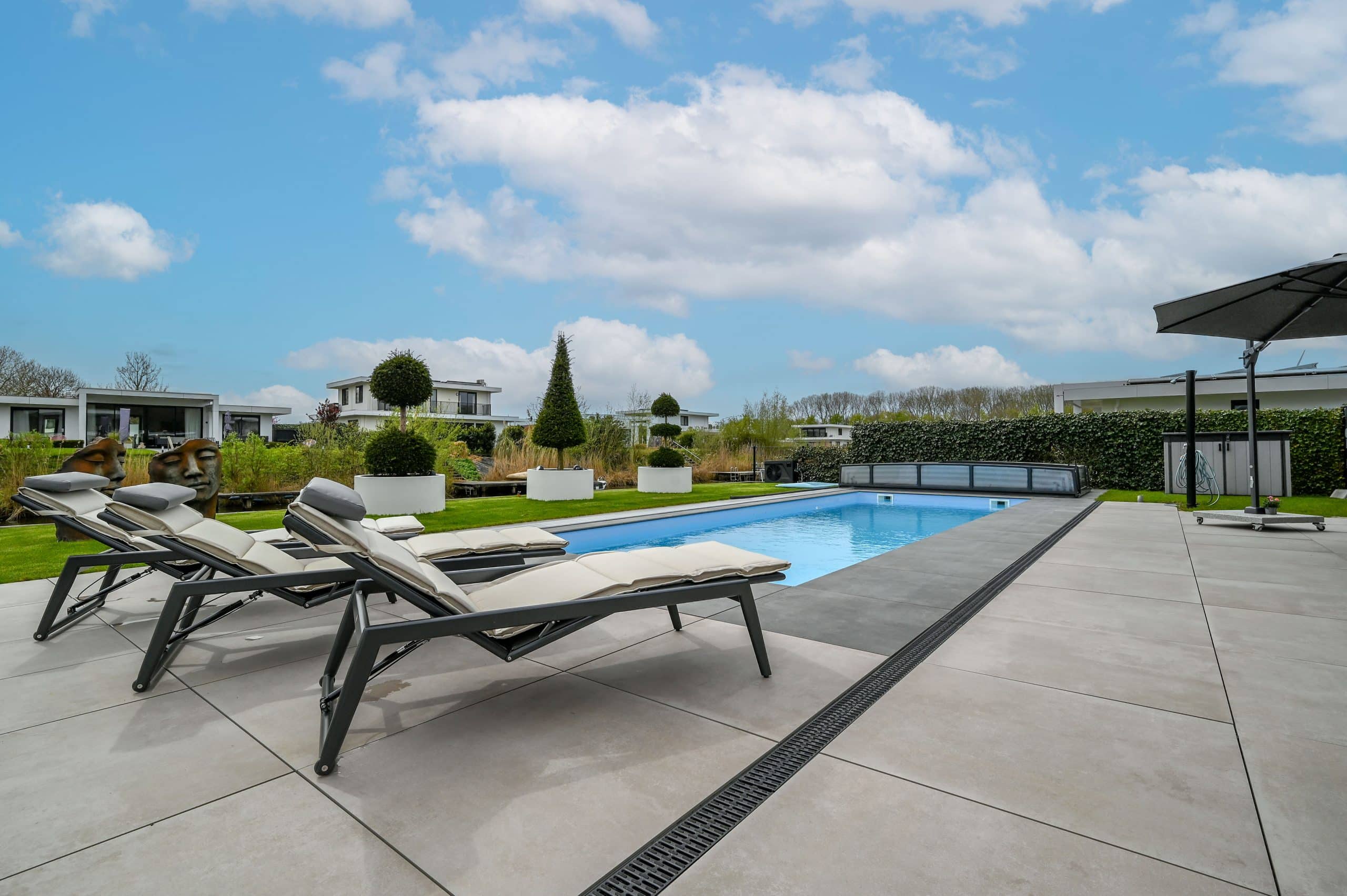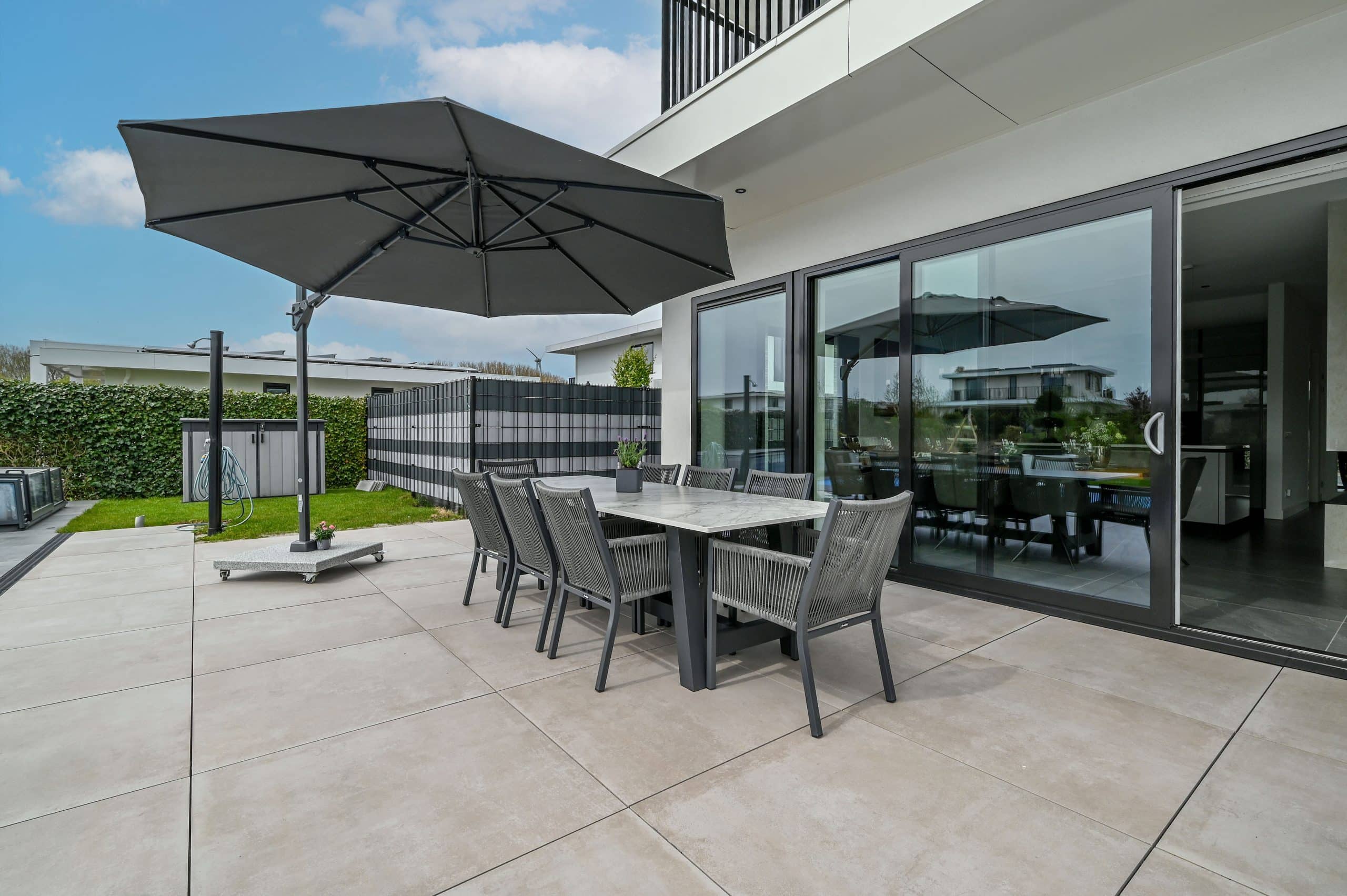 Overdekt en verwarmd buitenzwembad, jacuzzi, schuifpui, vloerverwarming, mechanische ventilatie, horren voor de schuifpui???, zonnepanelen (26 stuks), airconditioning in alle kamers, maairobot, pompinstallatie besproeiing, ruim terras met tuin op het zuiden.