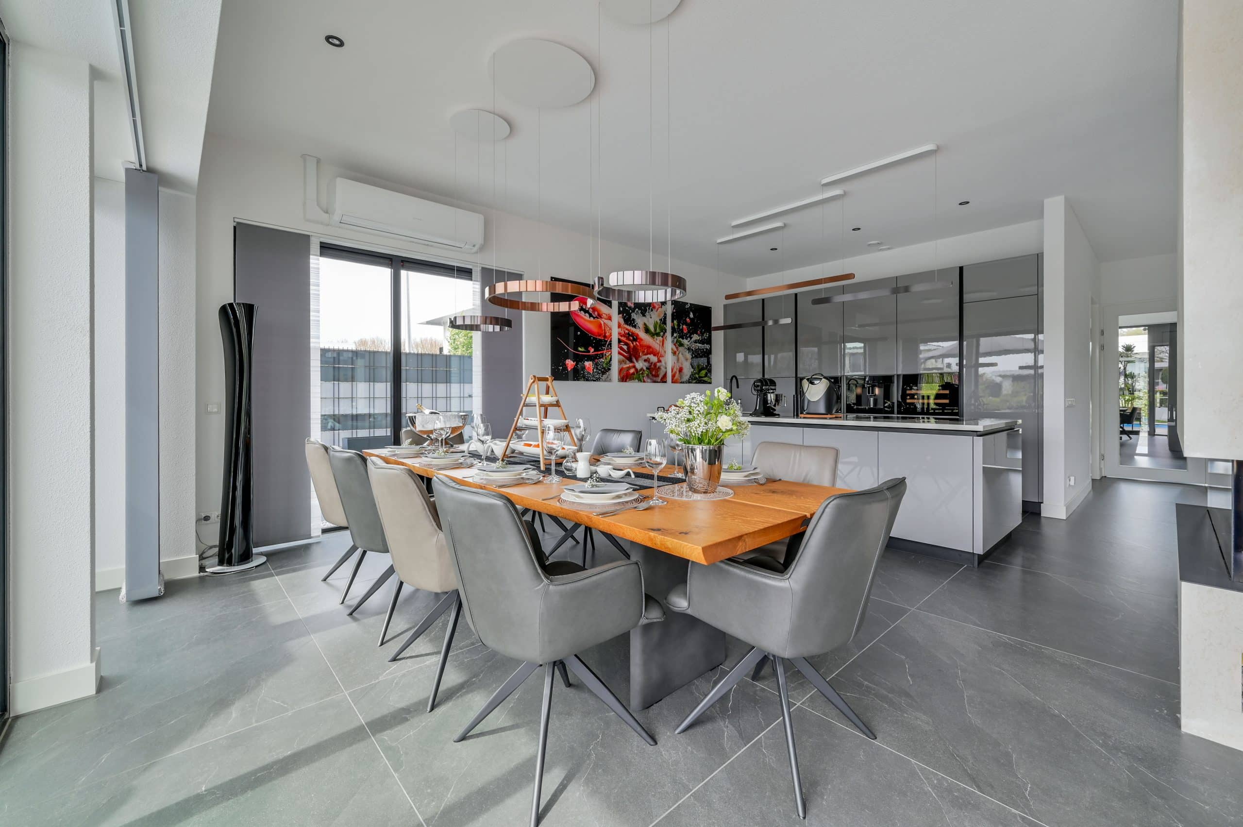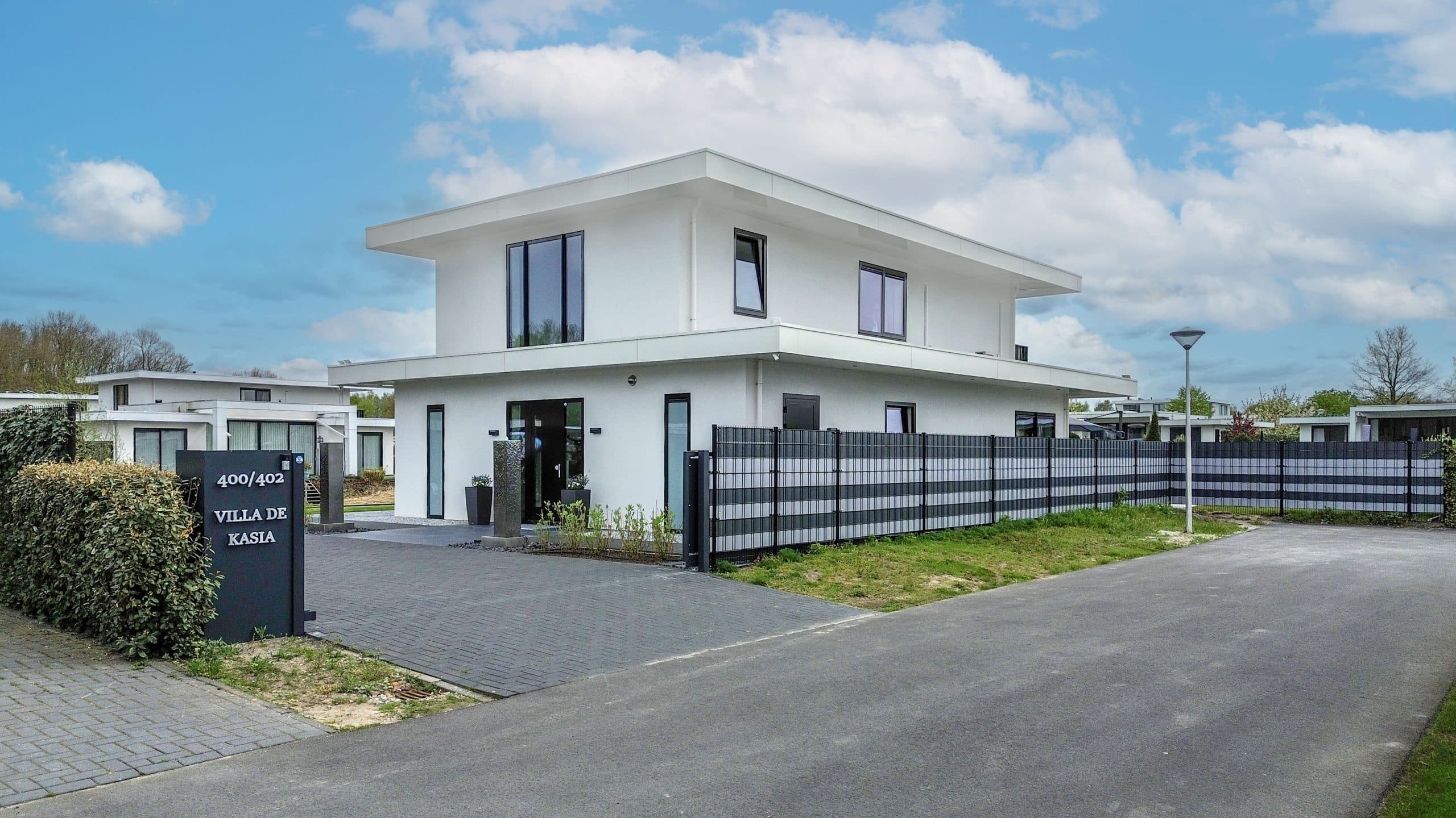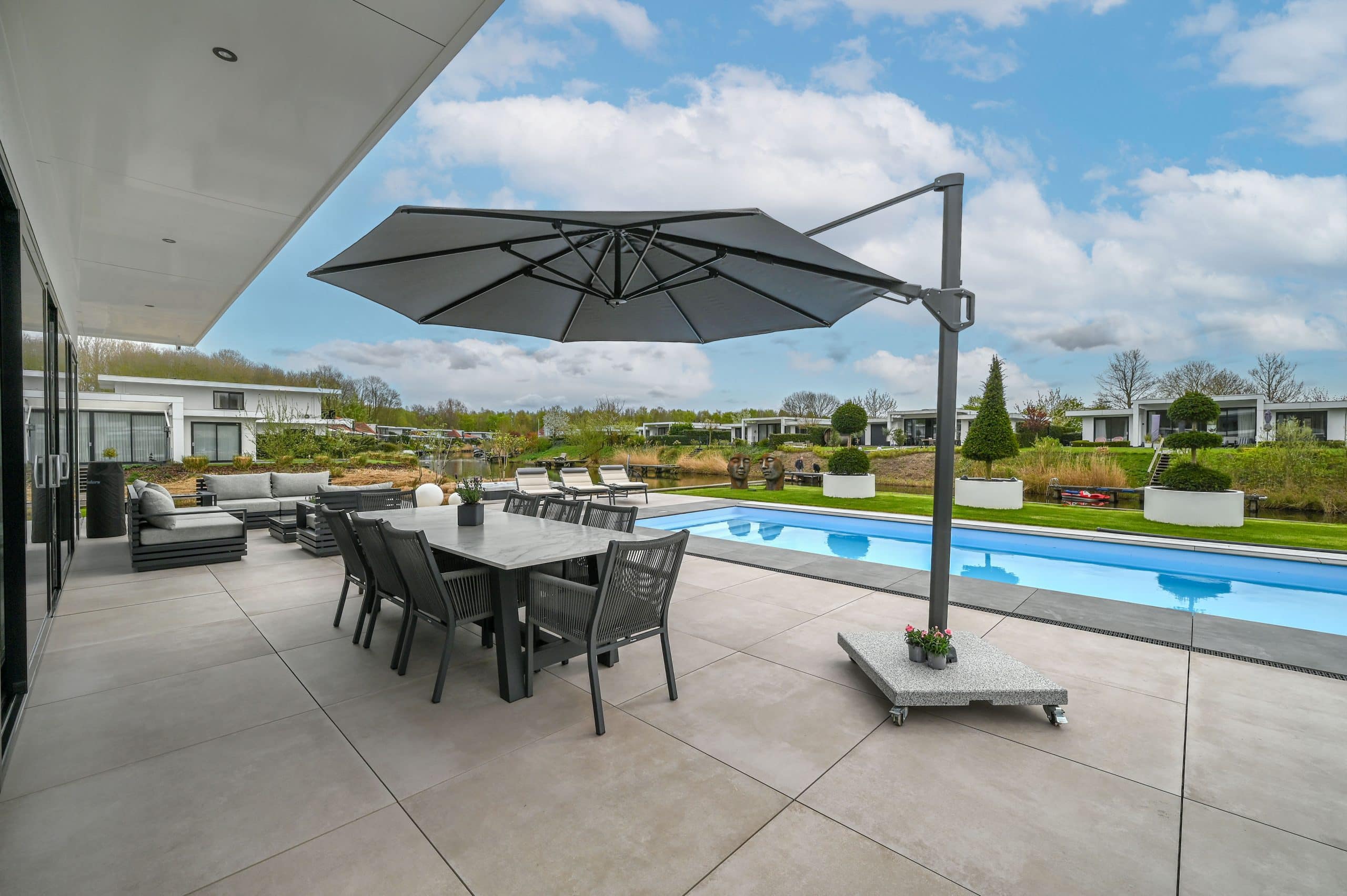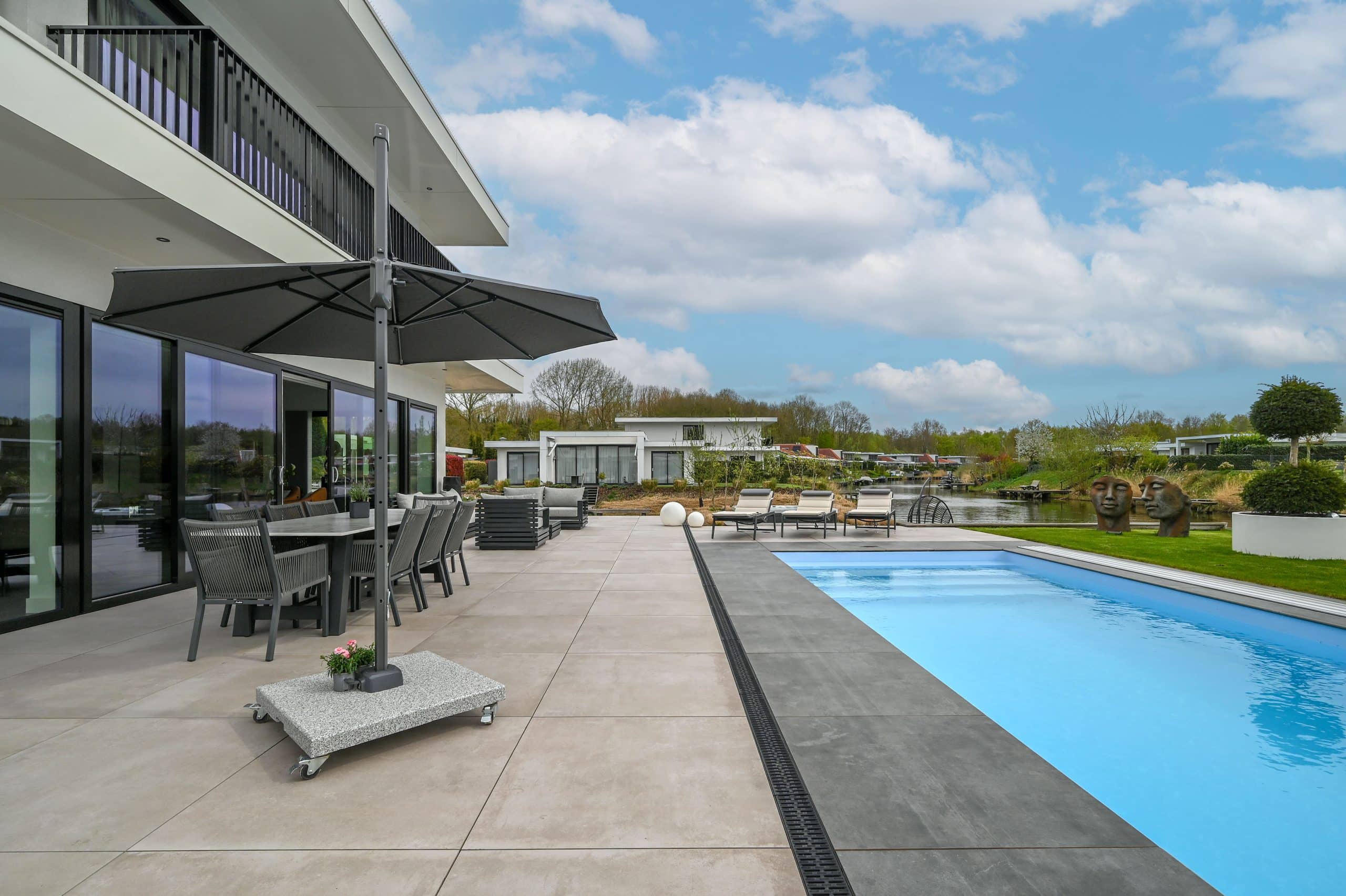 Overdekt en verwarmd buitenzwembad, jacuzzi, schuifpui, vloerverwarming, mechanische ventilatie, horren voor de schuifpui???, zonnepanelen (26 stuks), airconditioning in alle kamers, maairobot, pompinstallatie besproeiing, ruim terras met tuin op het zuiden.