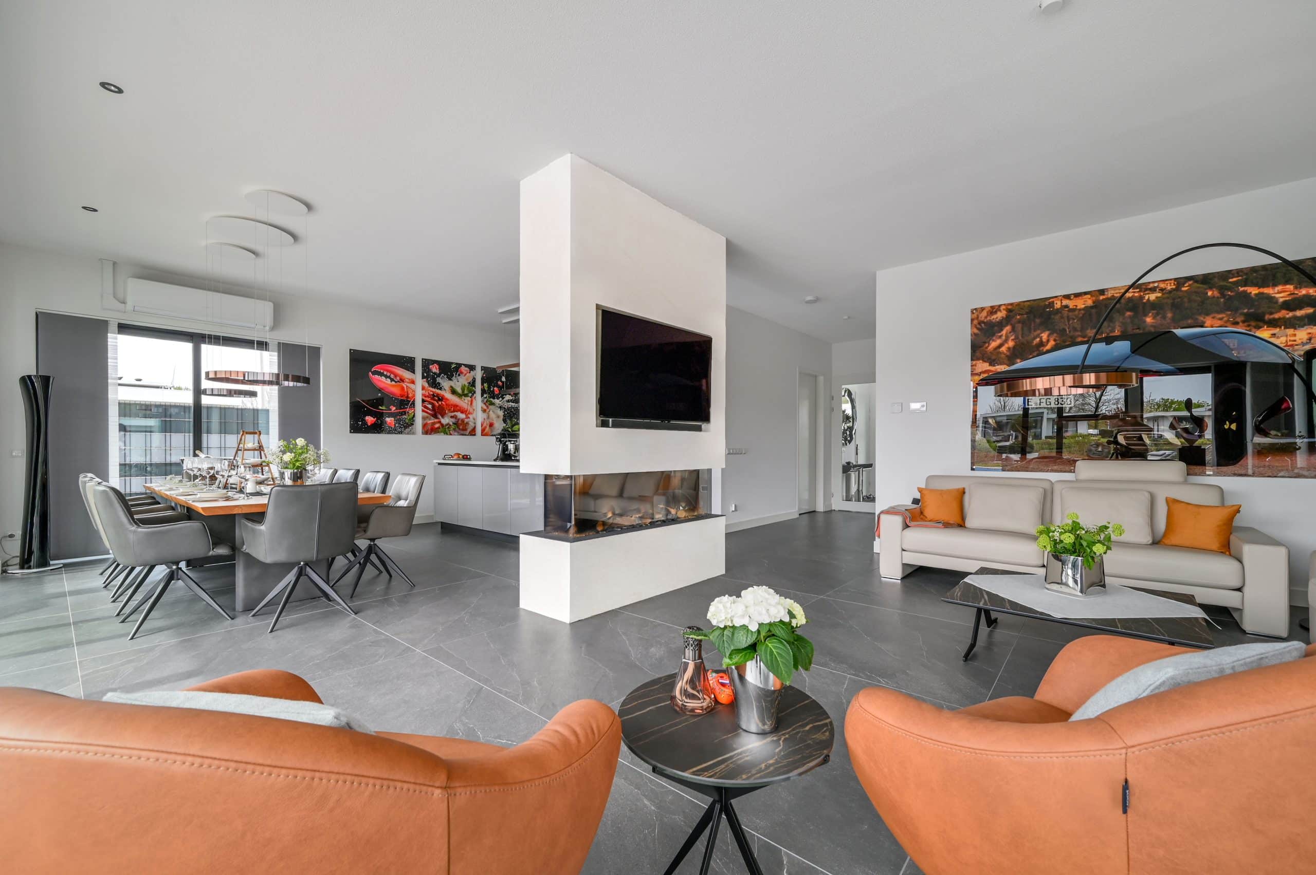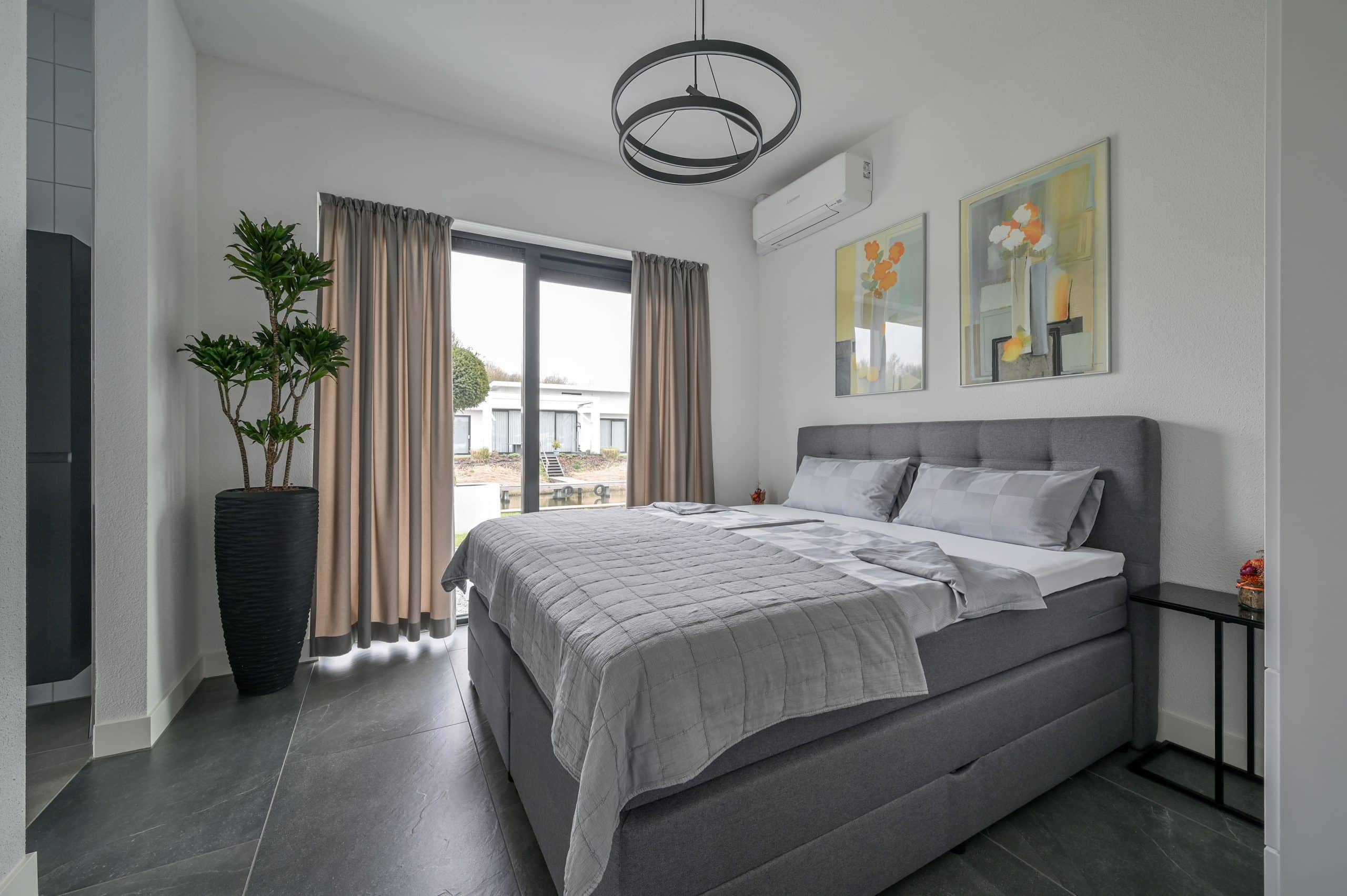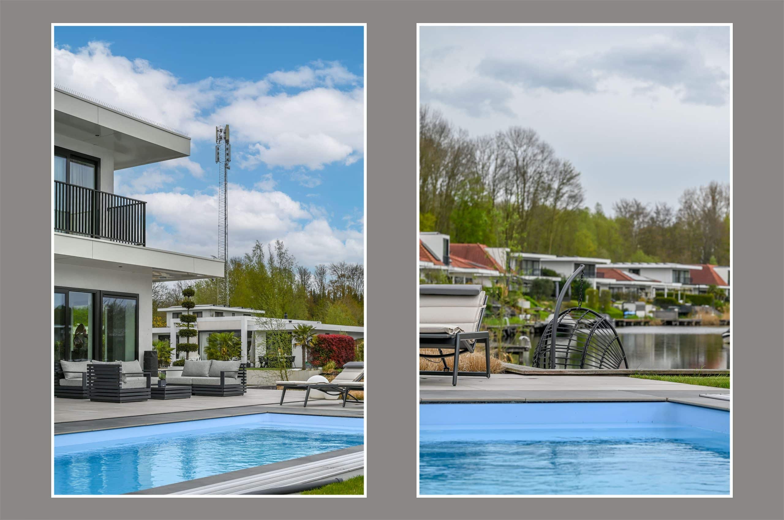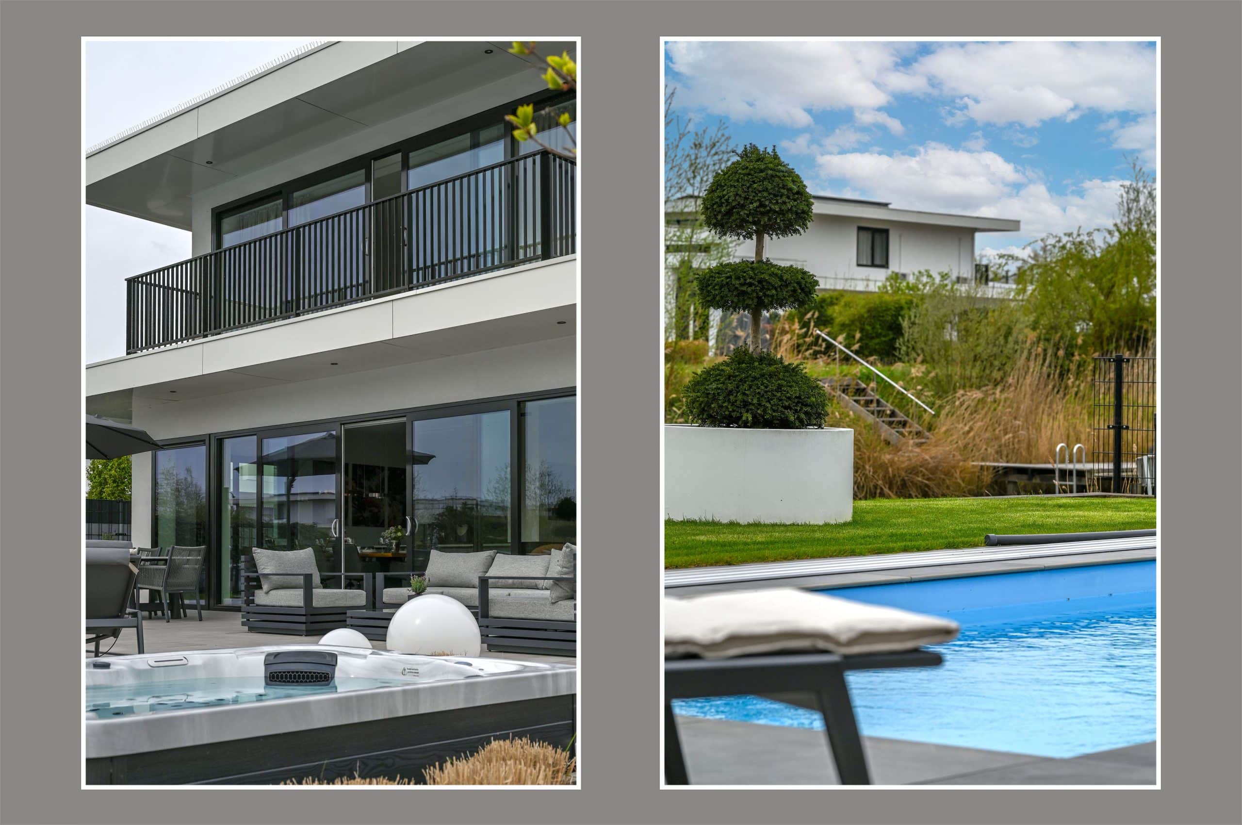 Overdekt en verwarmd buitenzwembad, jacuzzi, schuifpui, vloerverwarming, mechanische ventilatie, horren voor de schuifpui???, zonnepanelen (26 stuks), airconditioning in alle kamers, maairobot, pompinstallatie besproeiing, ruim terras met tuin op het zuiden.