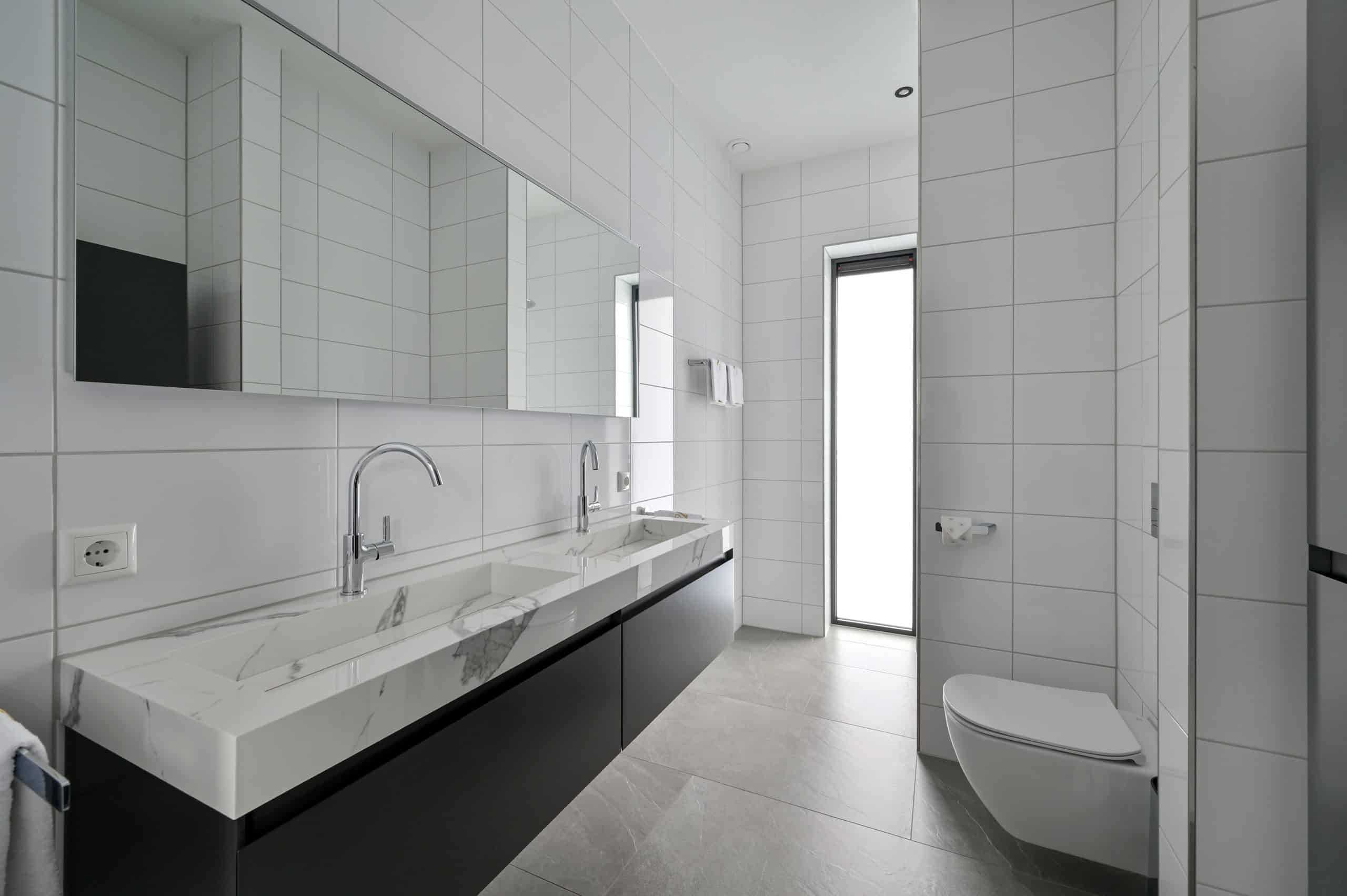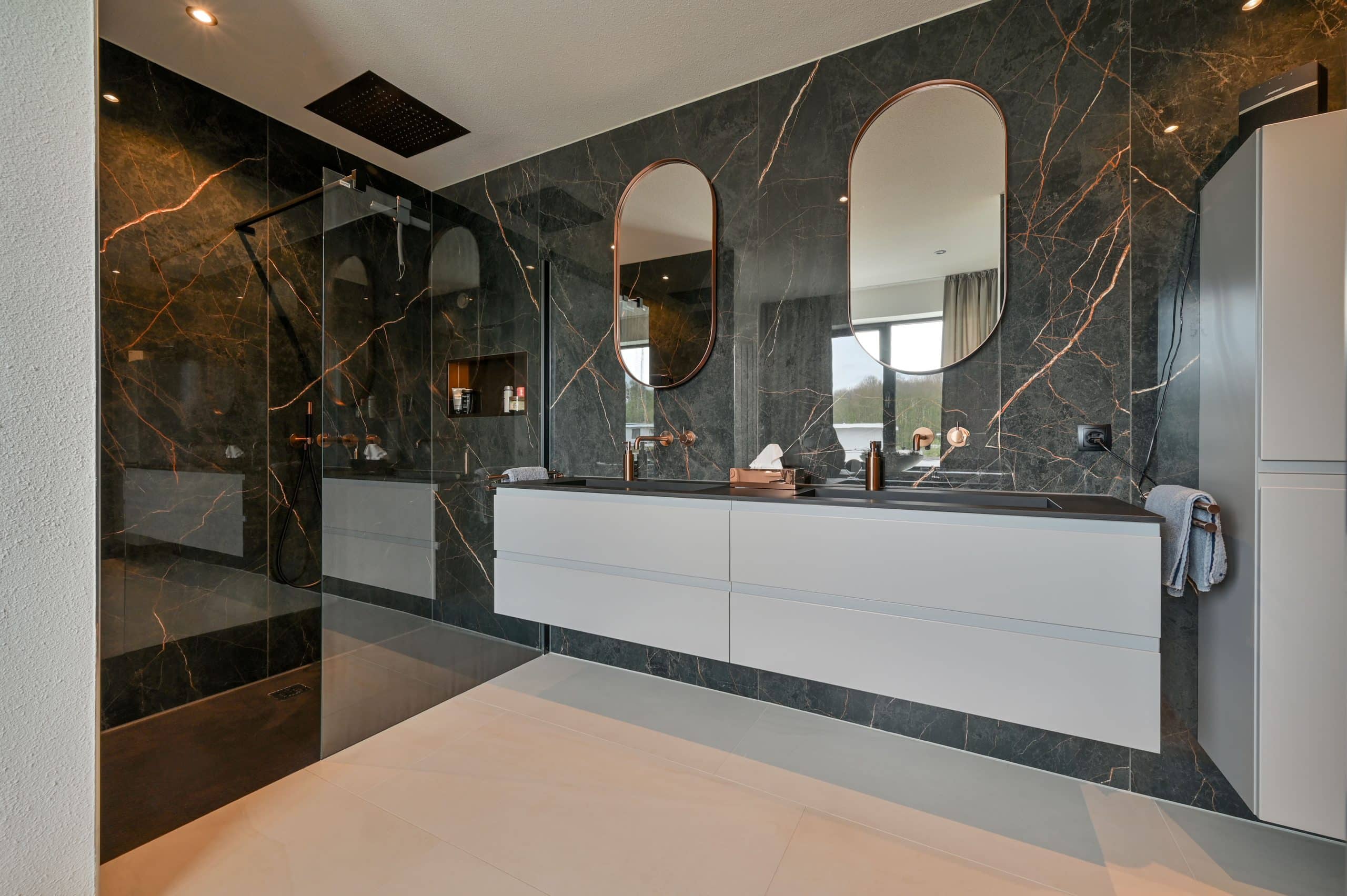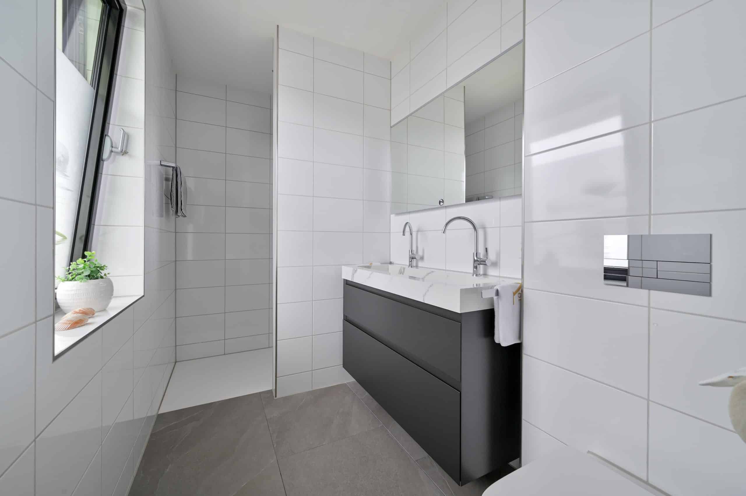 Inloopdouche, dubbel wasmeubel, toilet en vloerverwarming