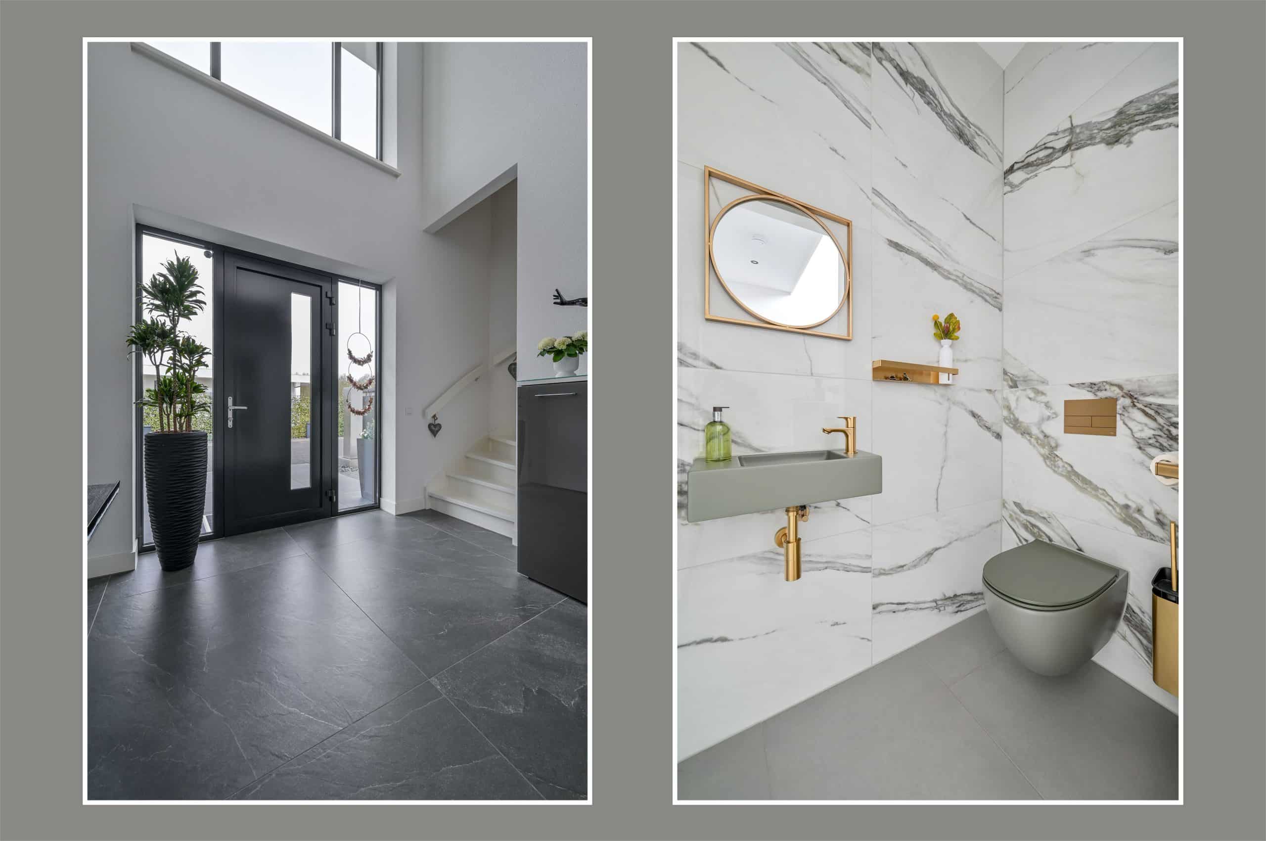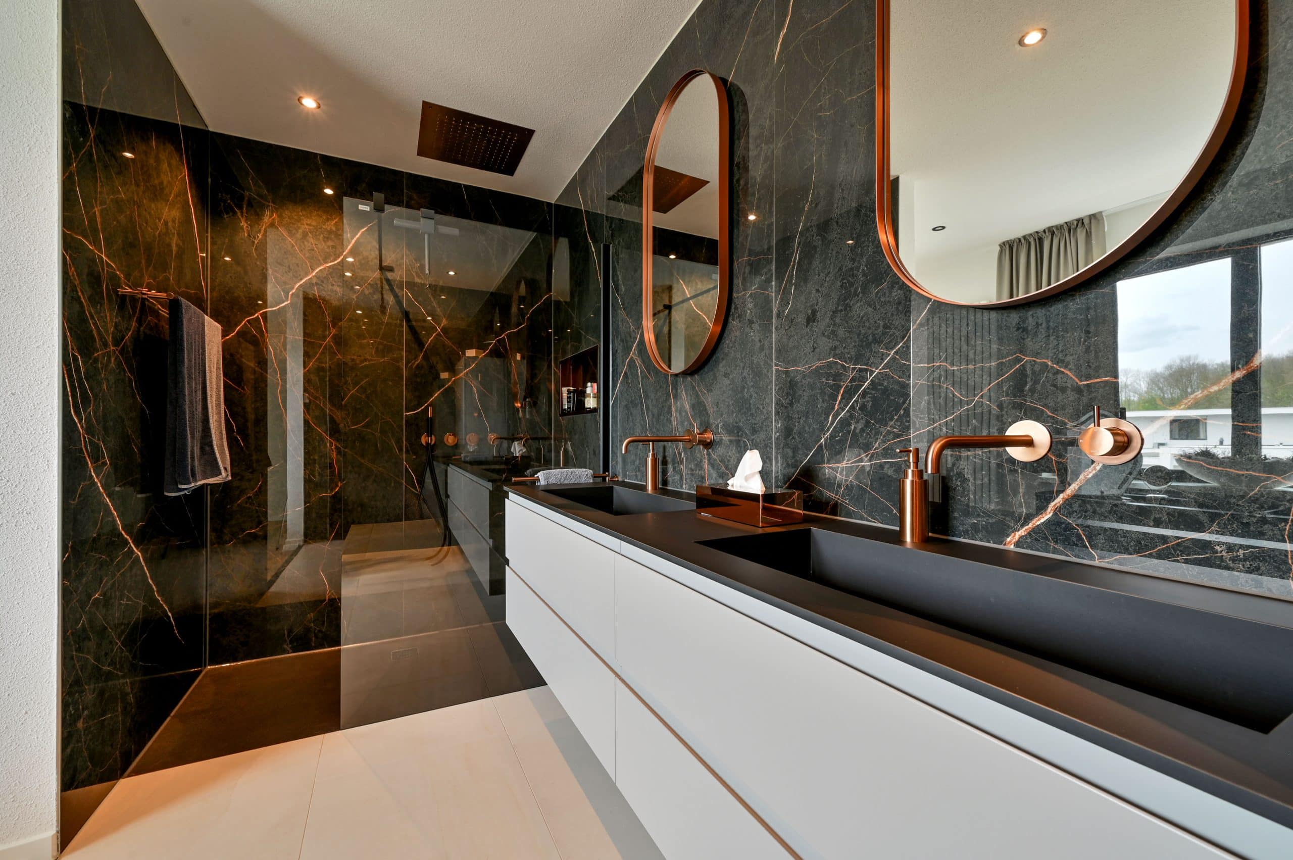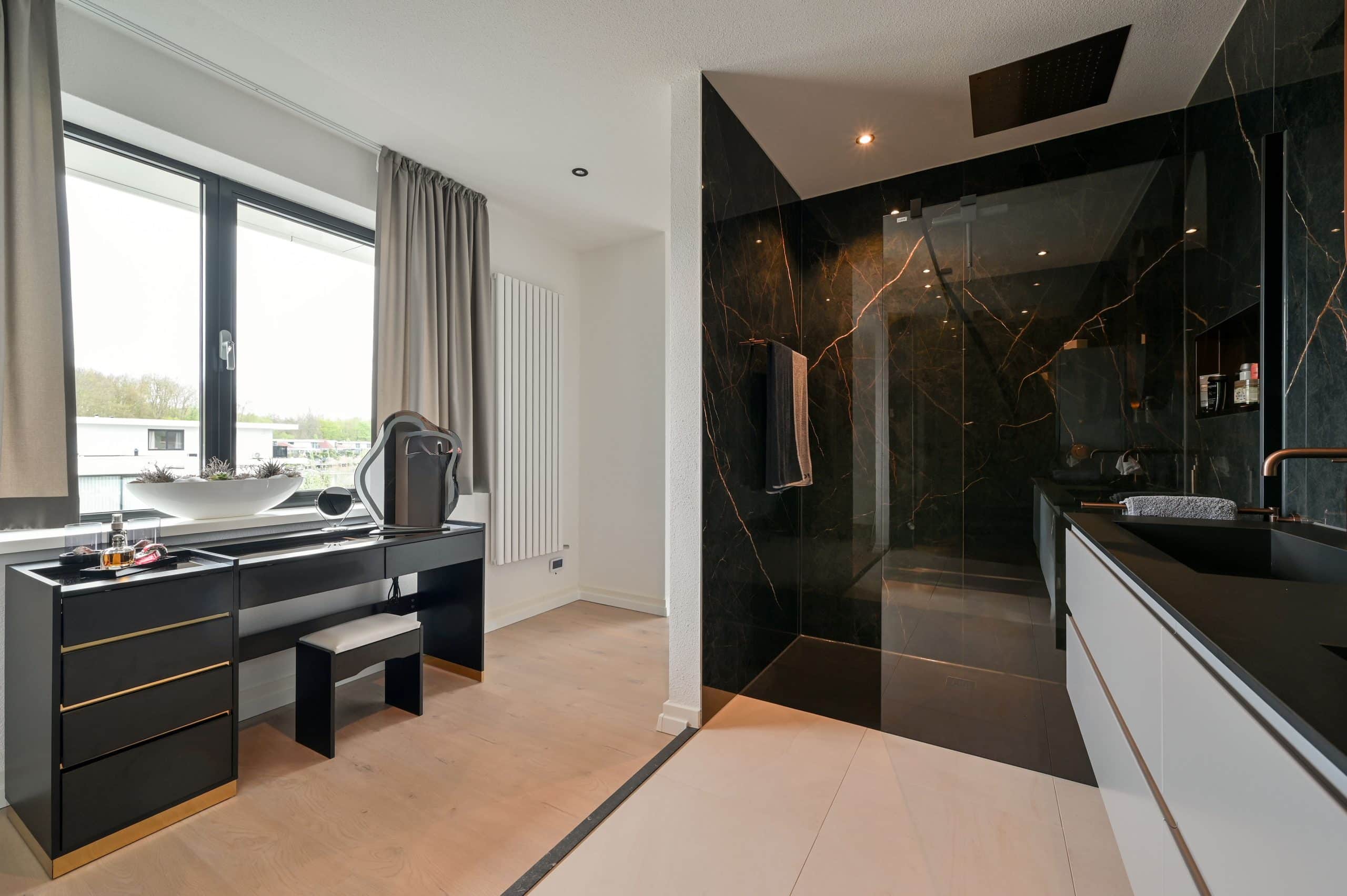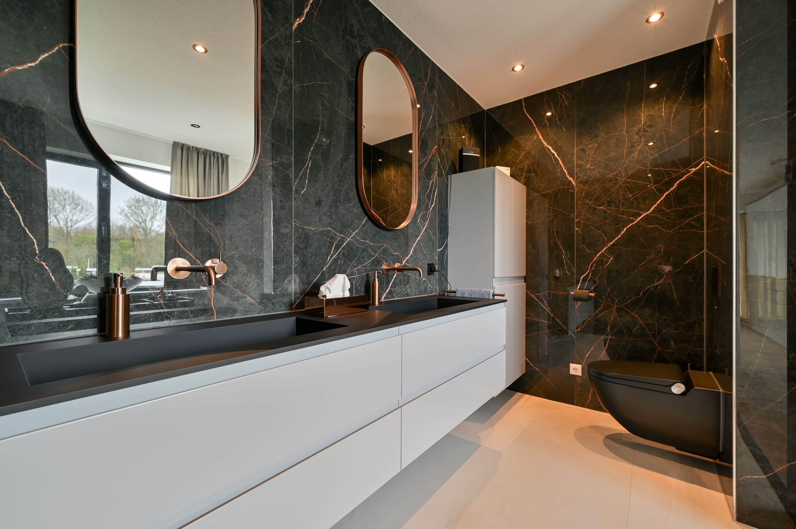 Inloopdouche, dubbel wasmeubel, toilet en vloerverwarming