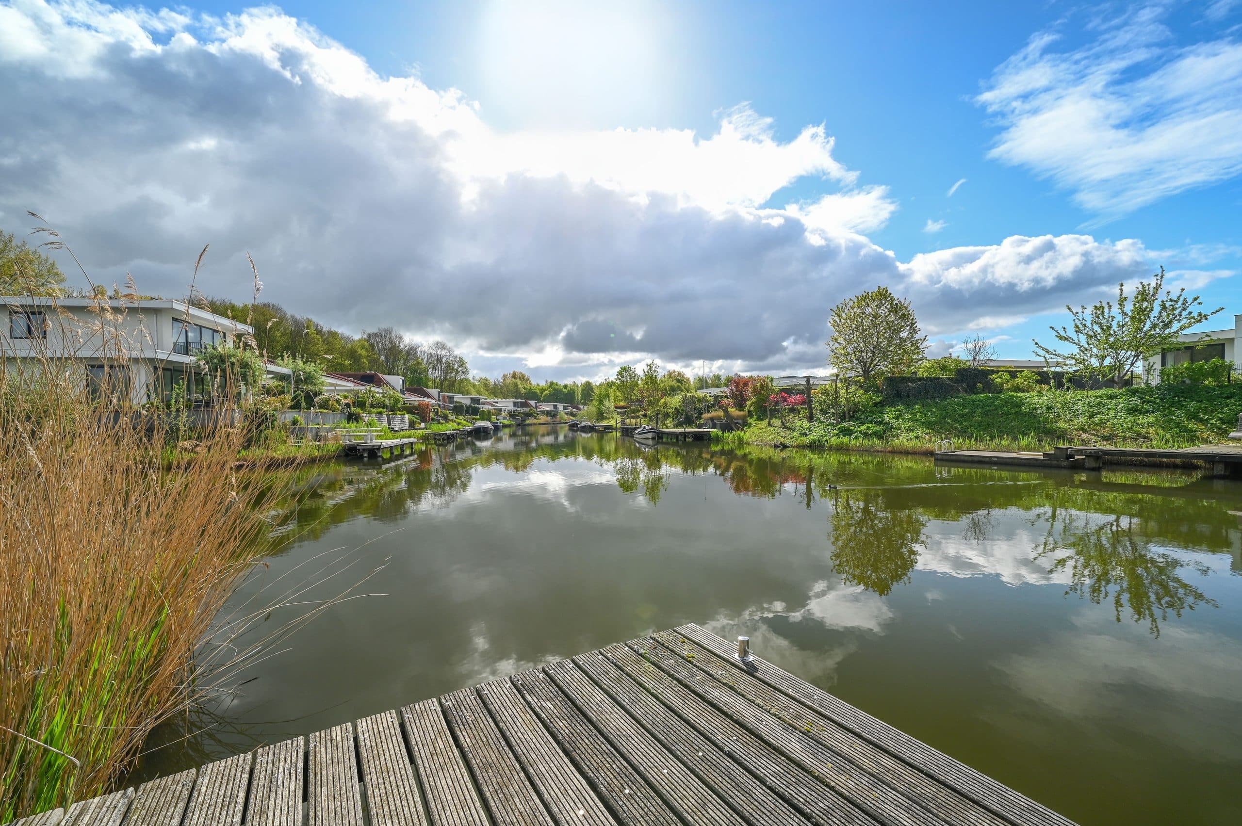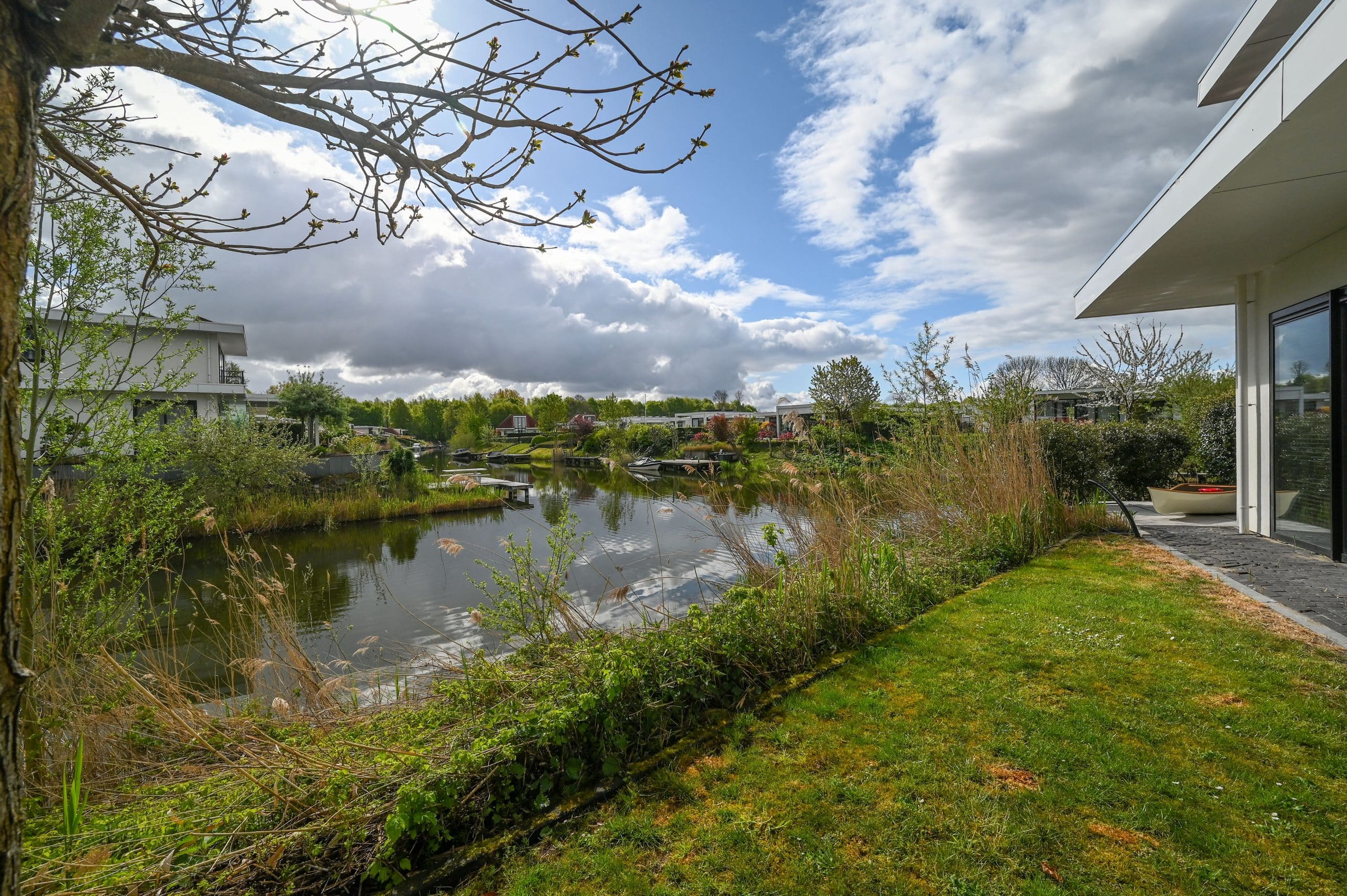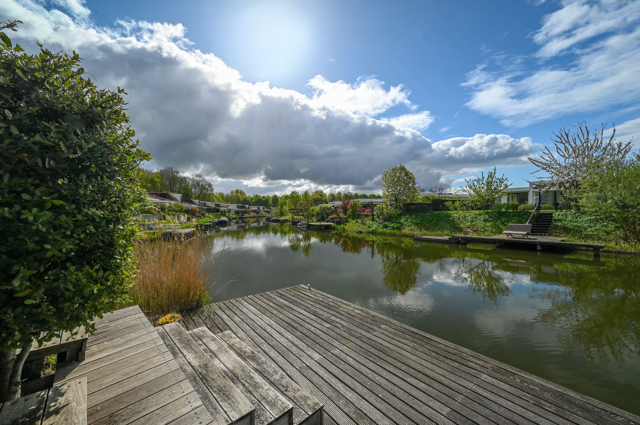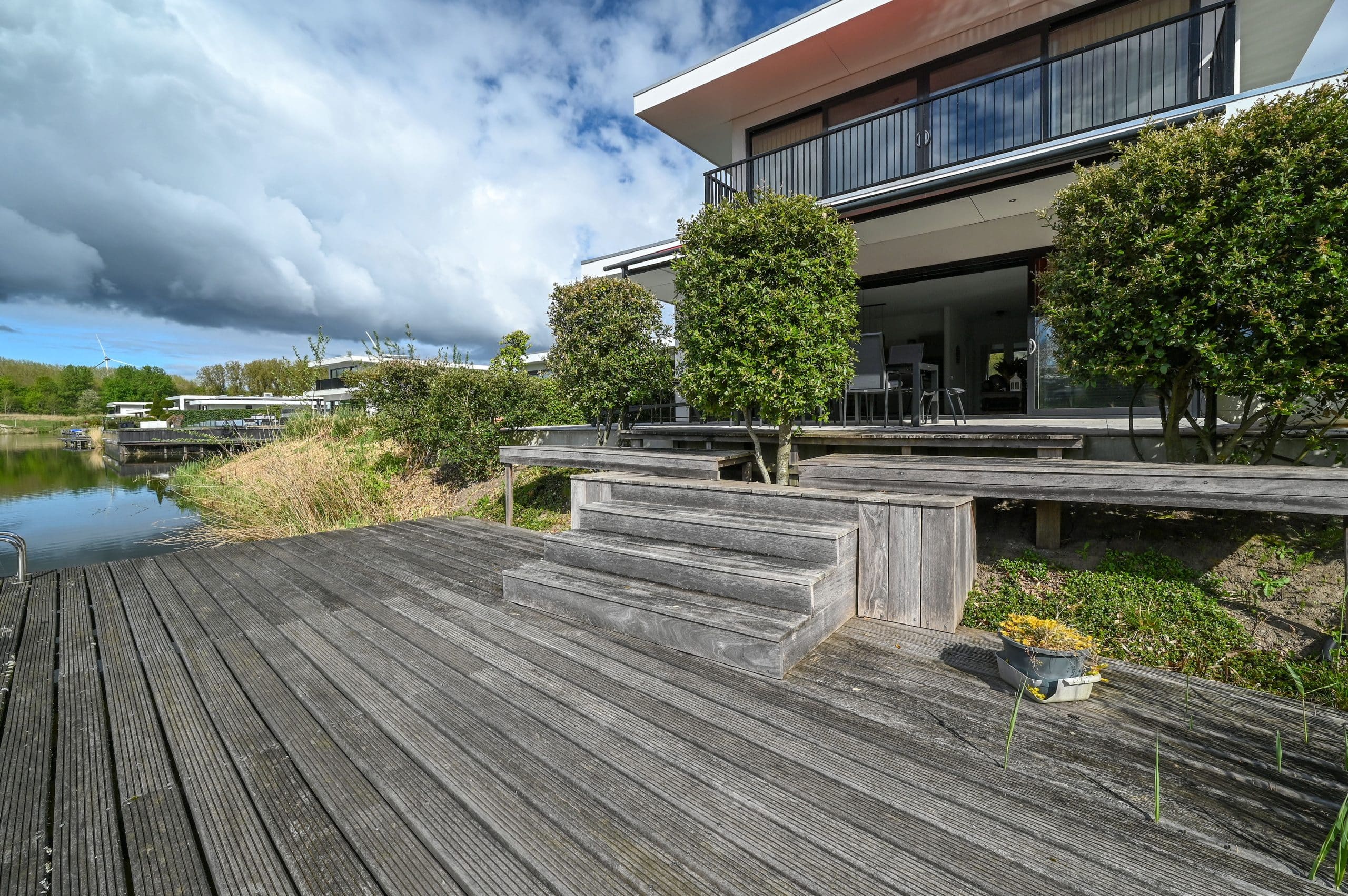 Tuin rondom met grote aanlegsteiger