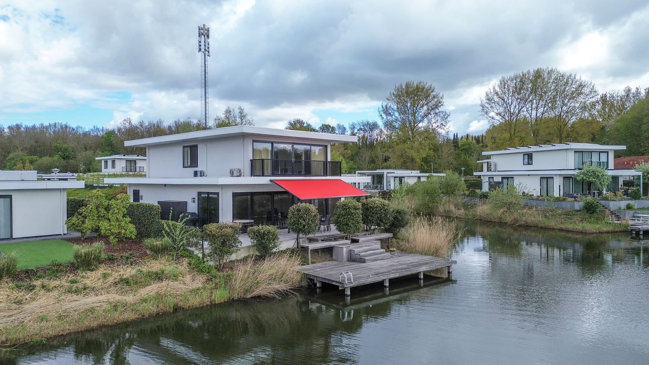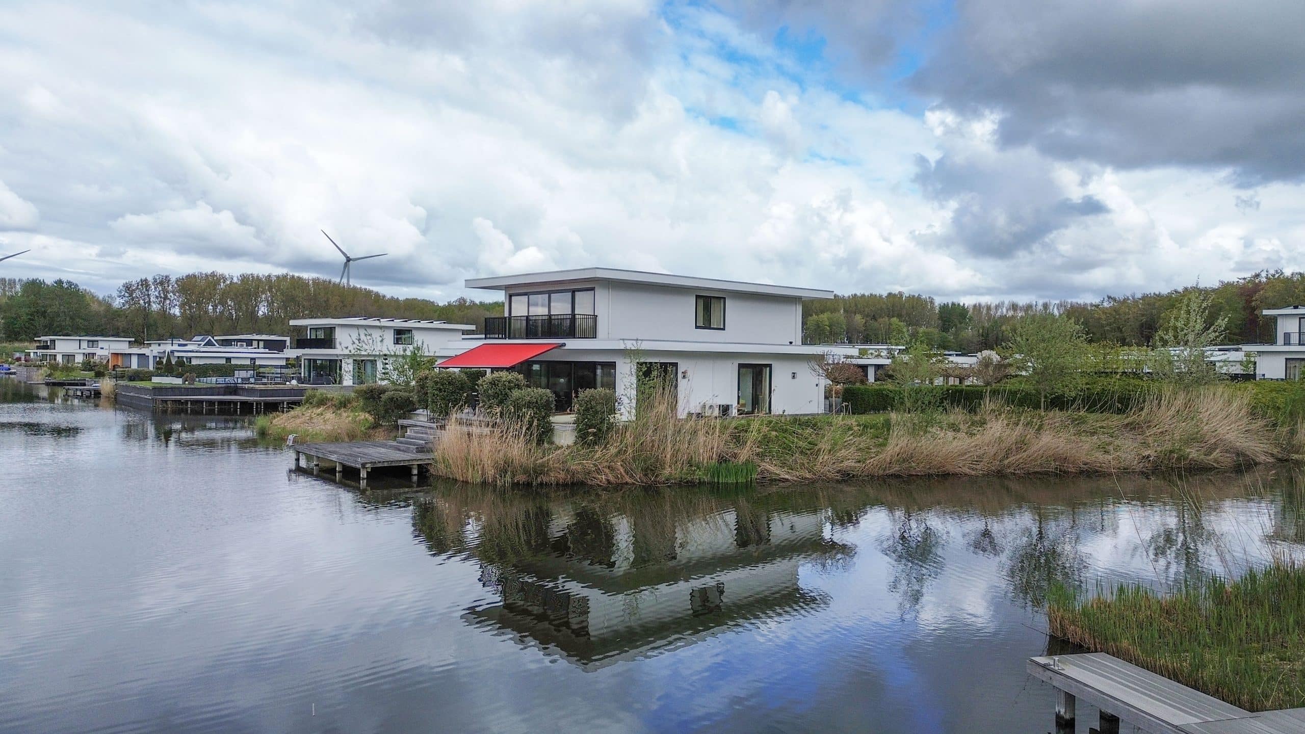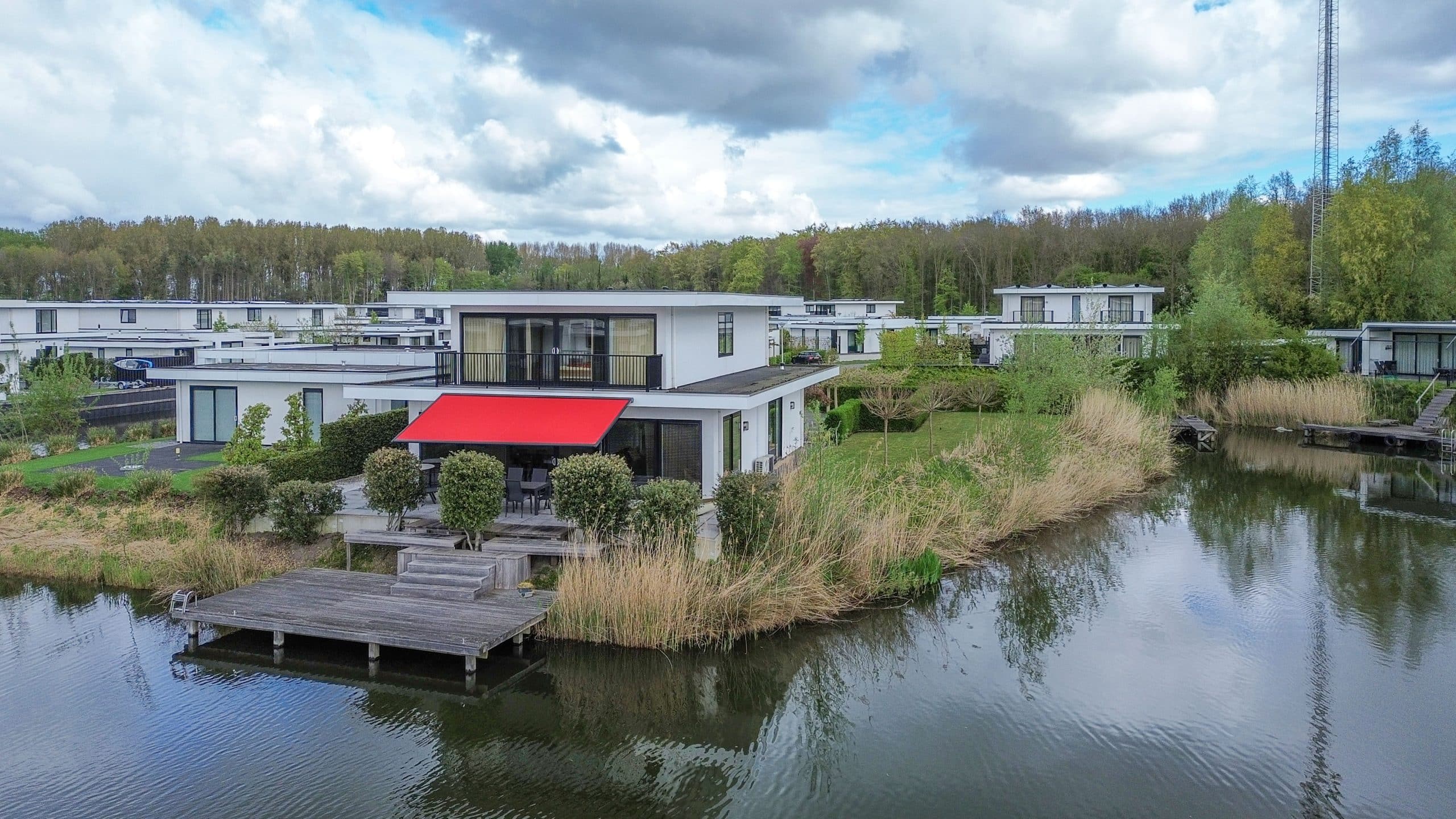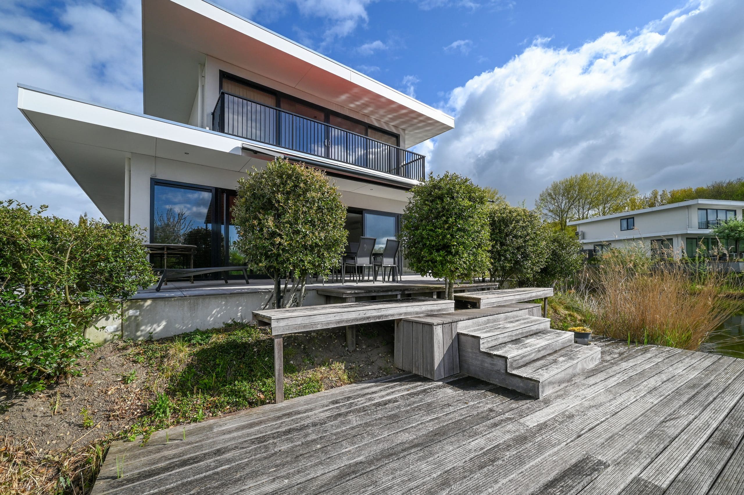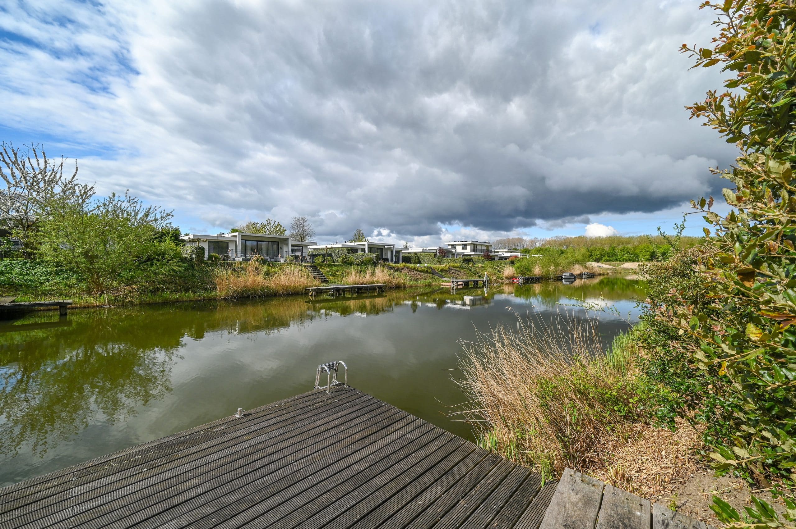 Tuin rondom met grote aanlegsteiger