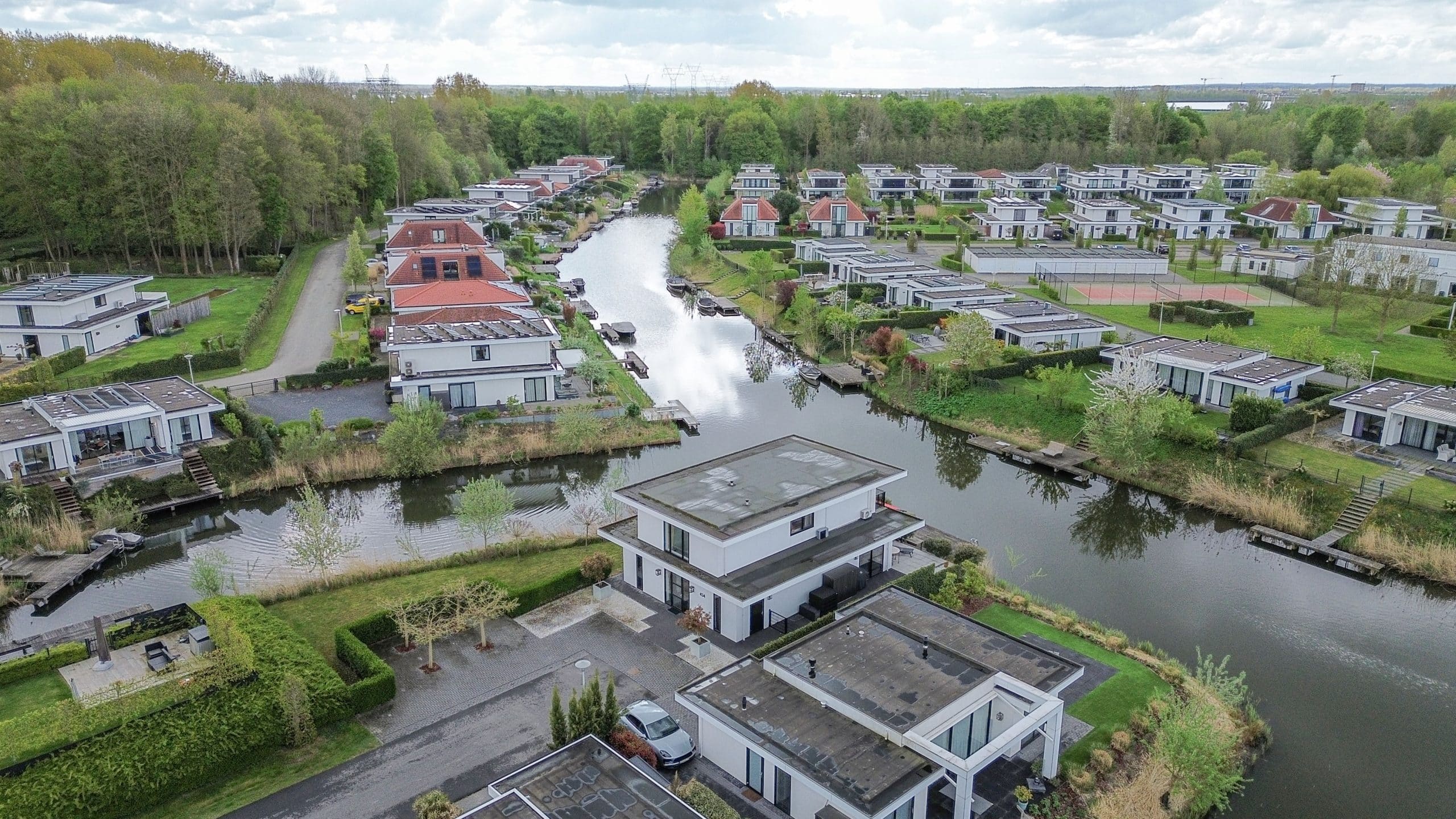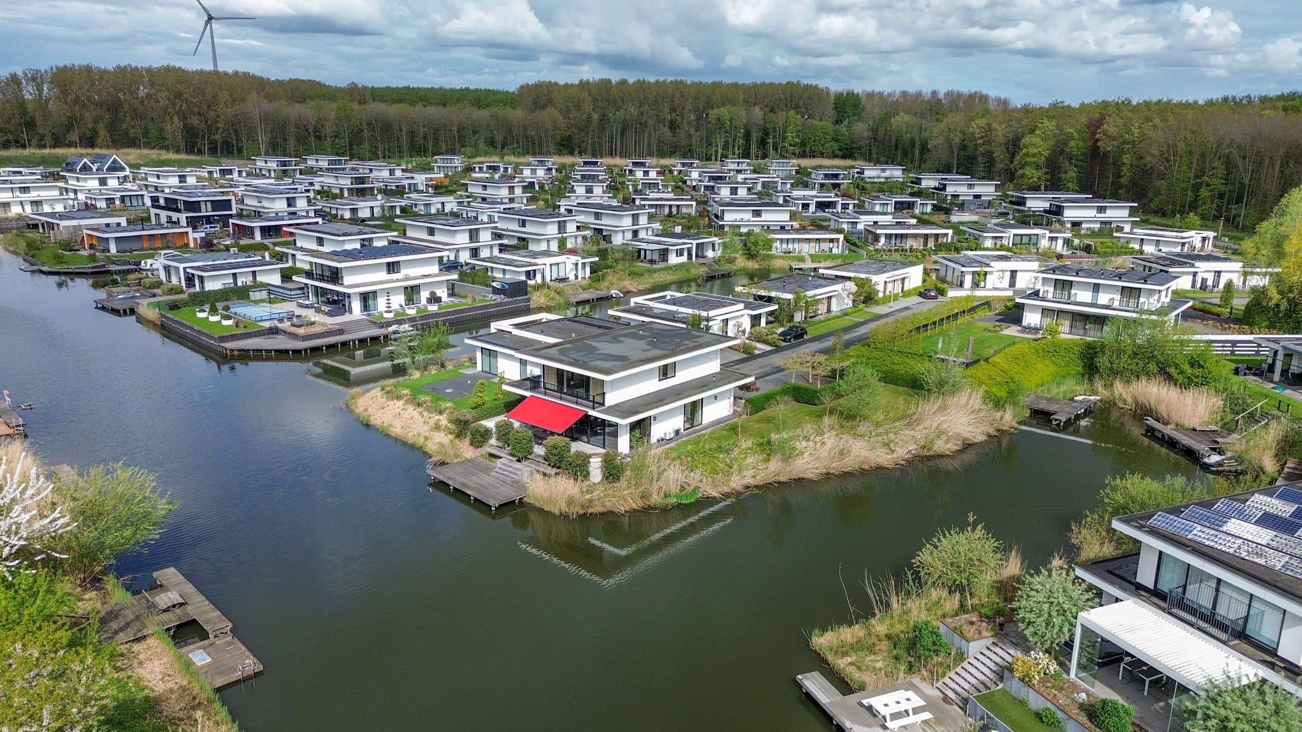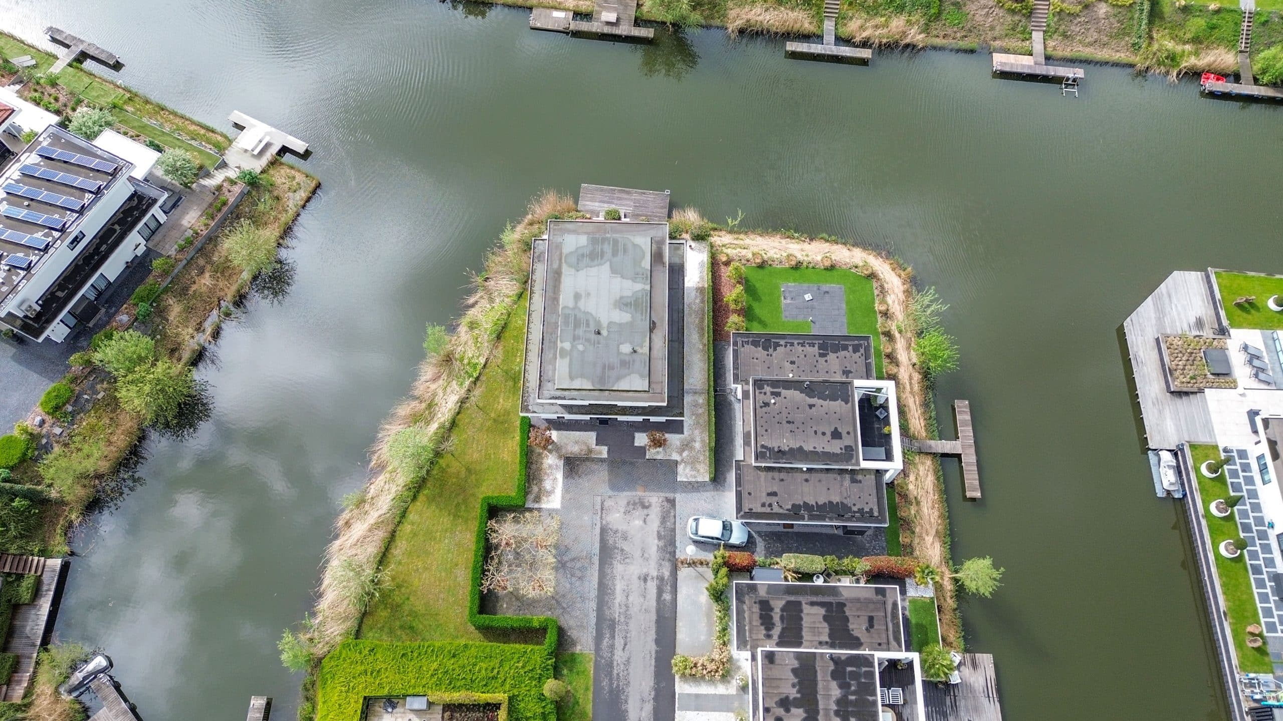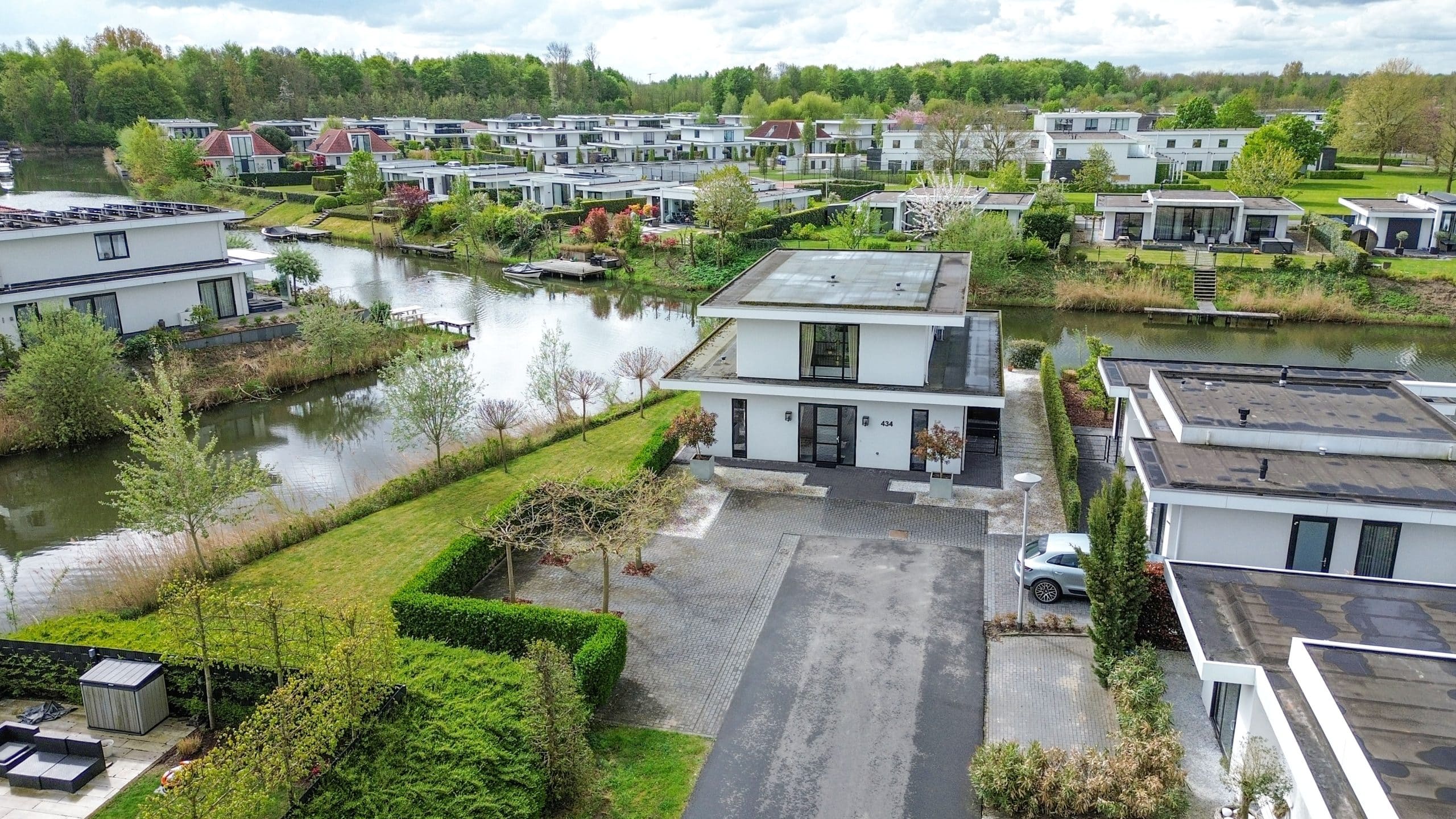 Tuin rondom met grote aanlegsteiger