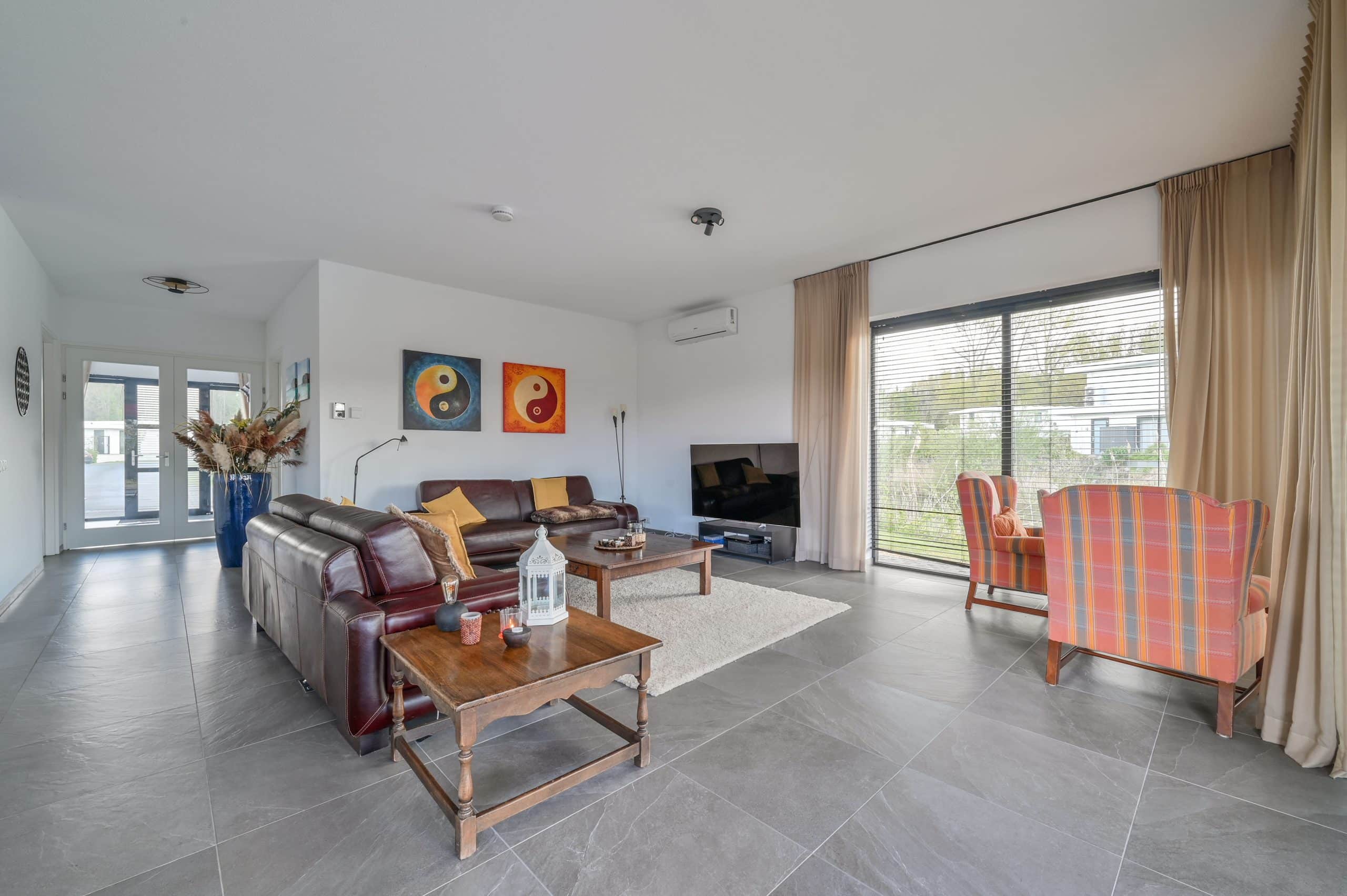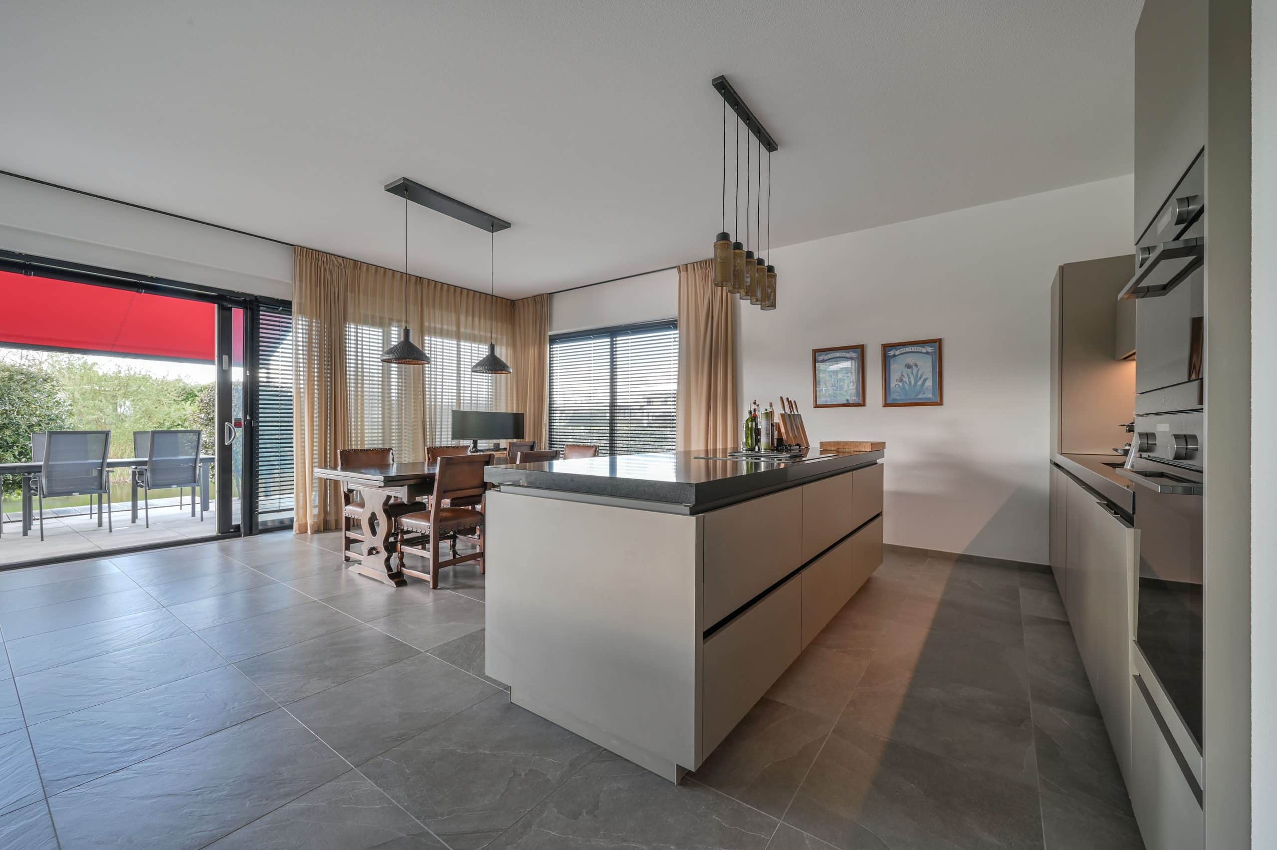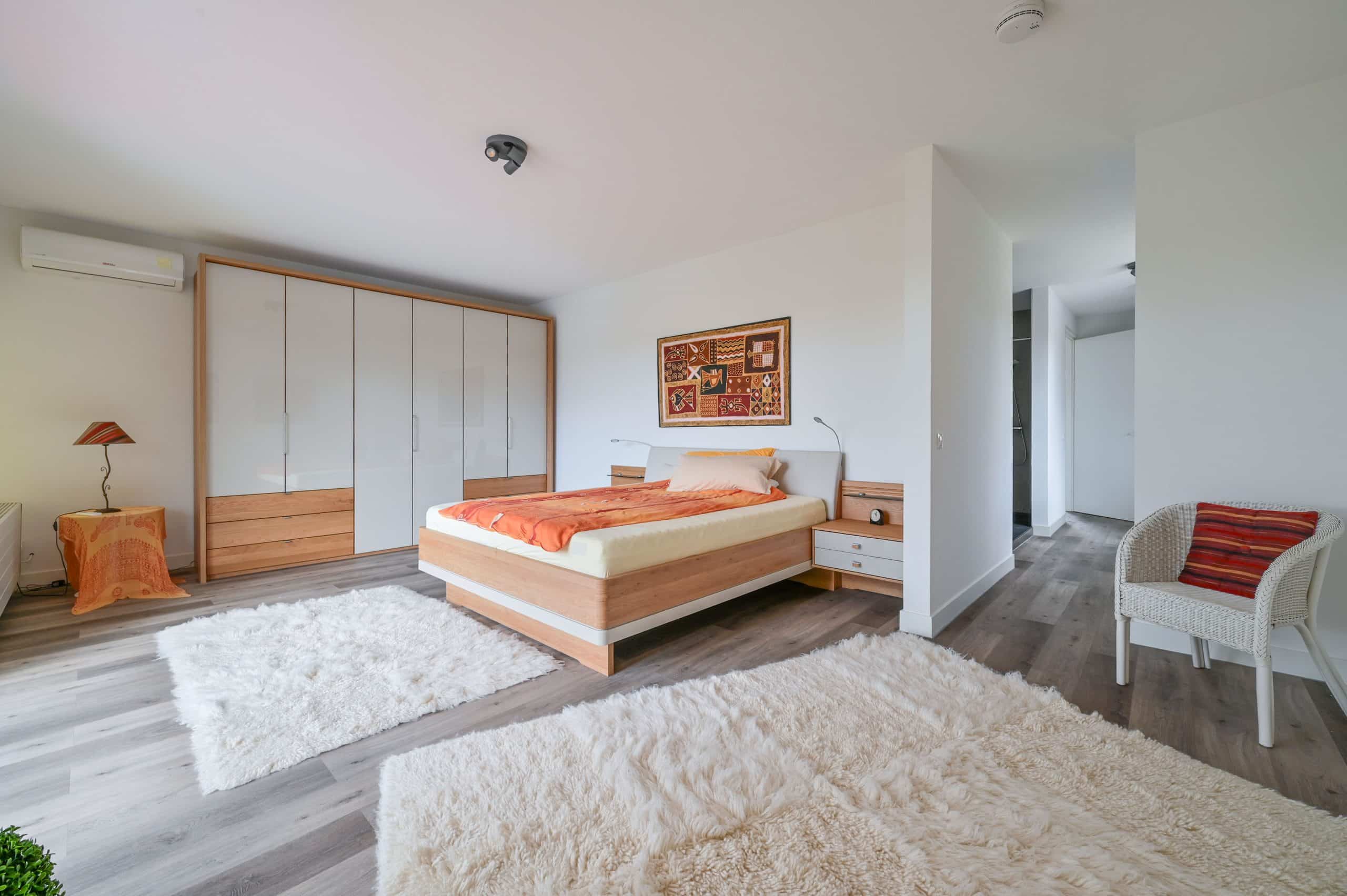 Schuifpui, met horren, vloerverwarming, mechanische ventilatie, airconditioning in alle kamers, pompinstallatie besproeiing, ruim terras met tuin op het zuiden, zonnescherm.