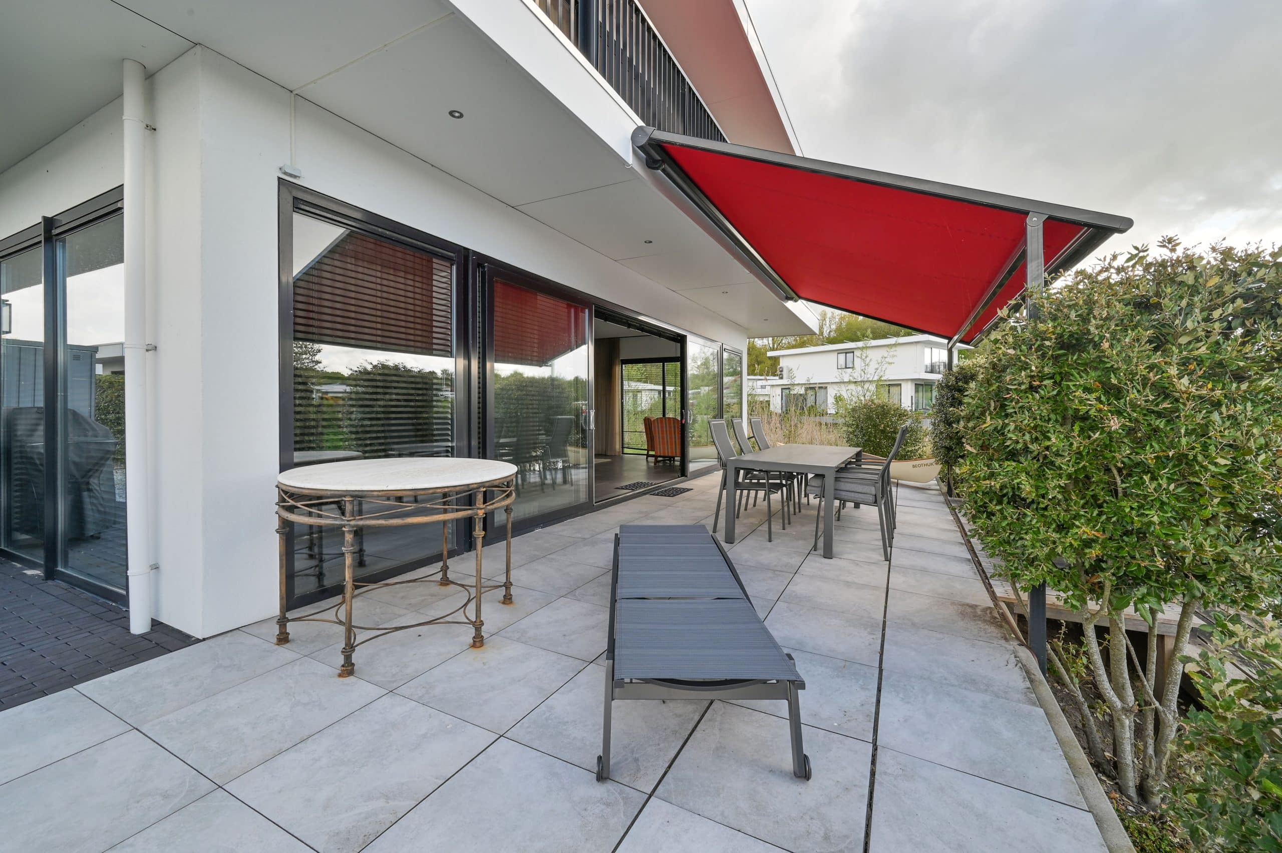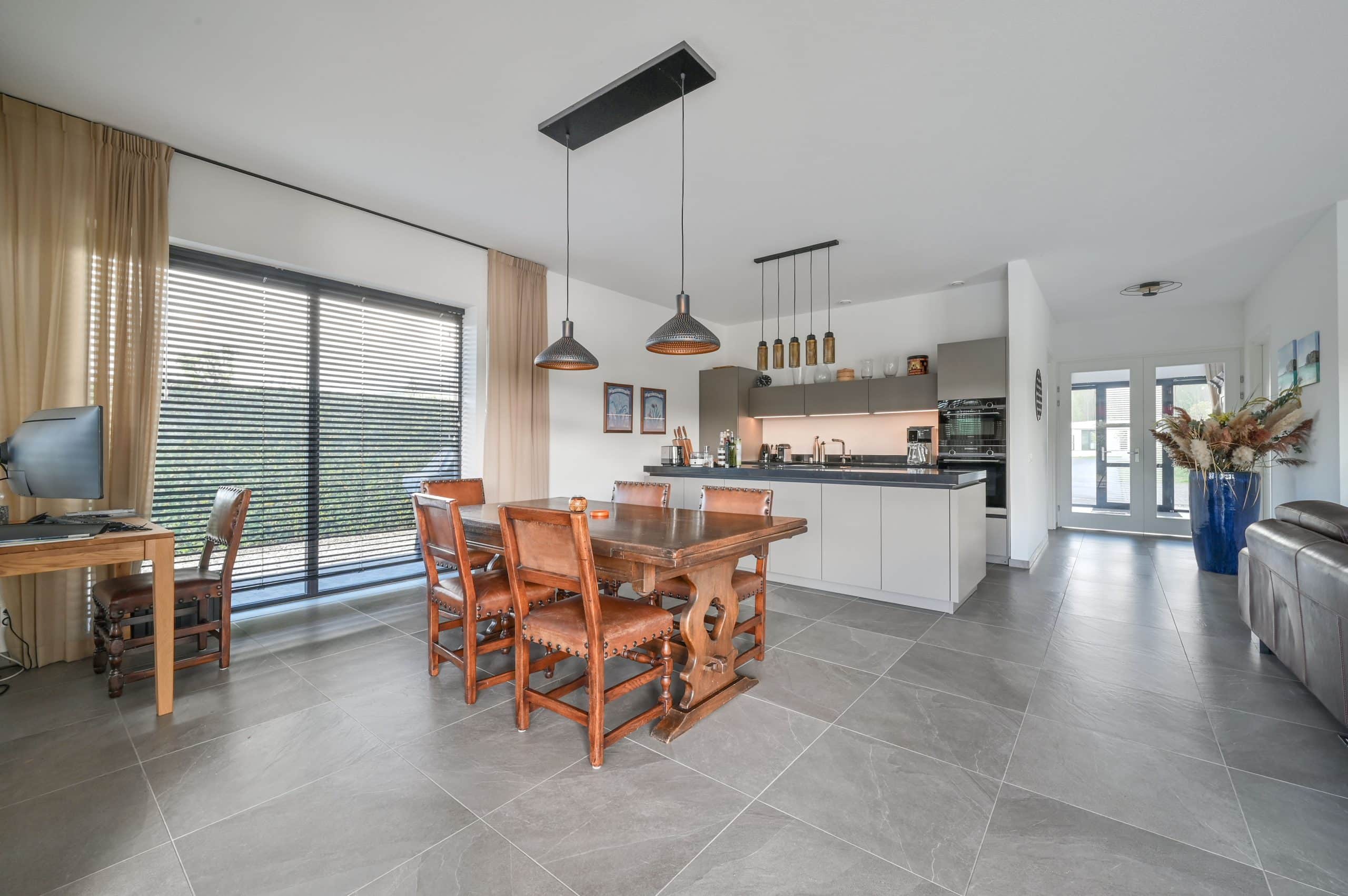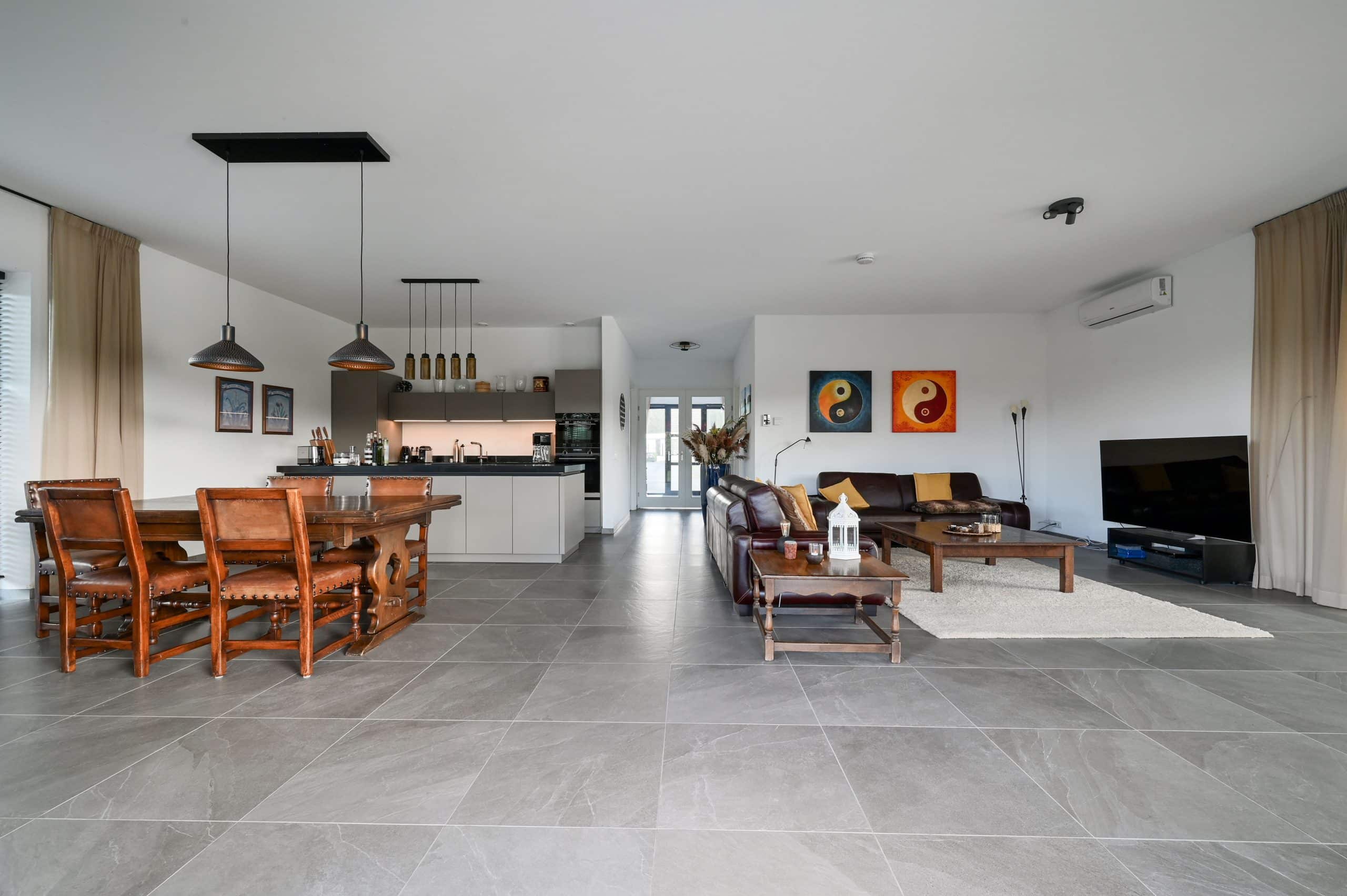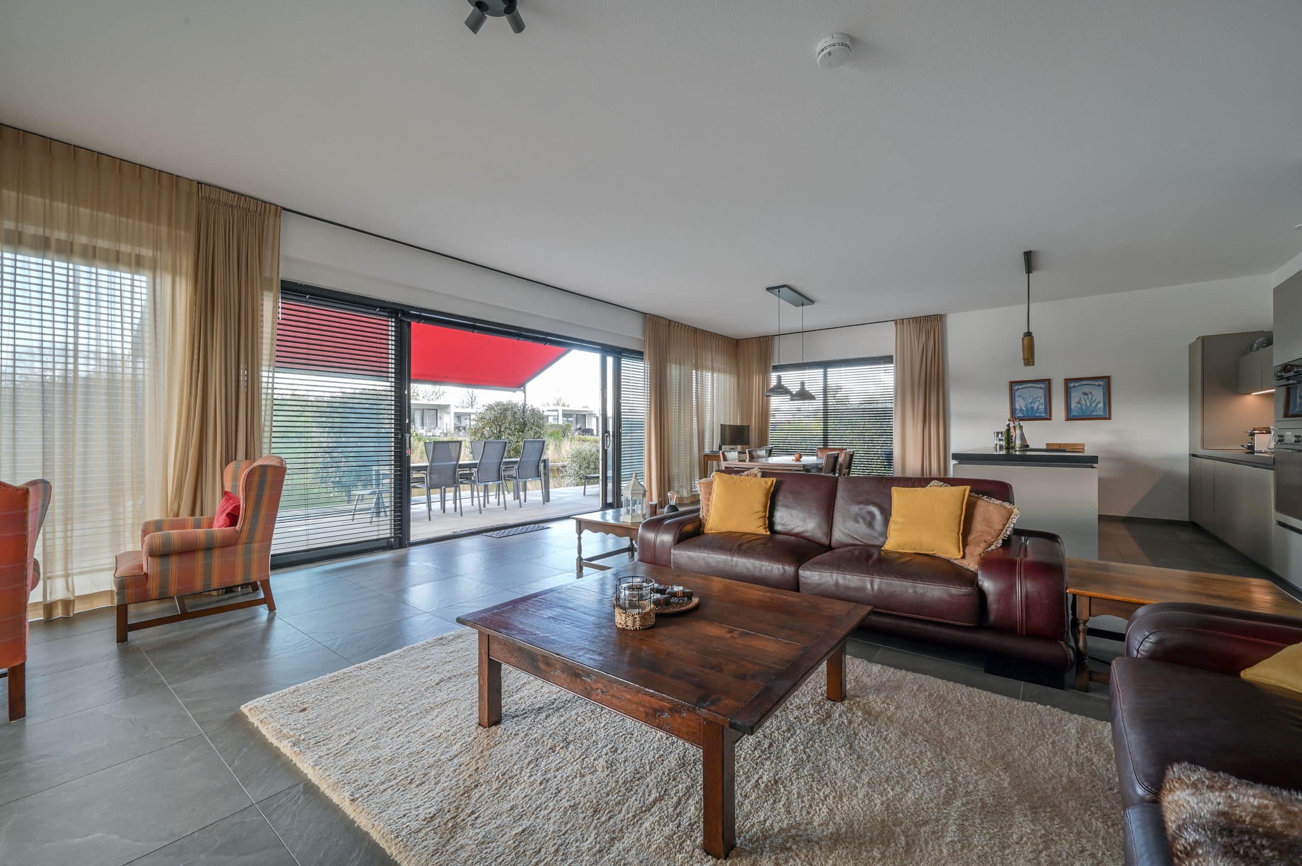 Schuifpui, met horren, vloerverwarming, mechanische ventilatie, airconditioning in alle kamers, pompinstallatie besproeiing, ruim terras met tuin op het zuiden, zonnescherm.