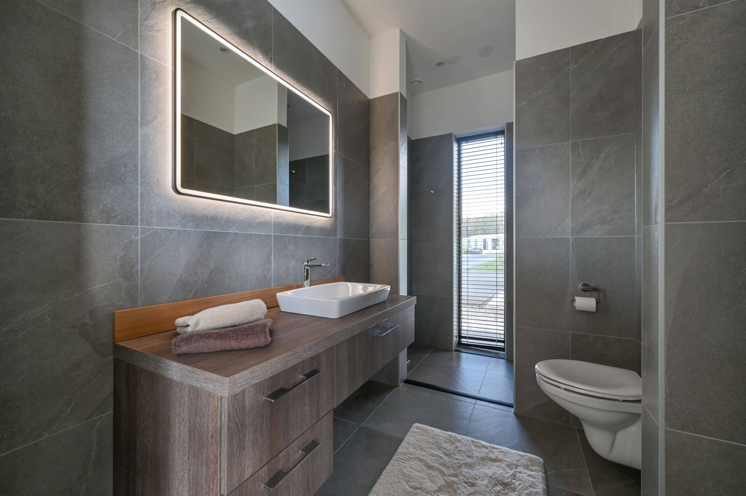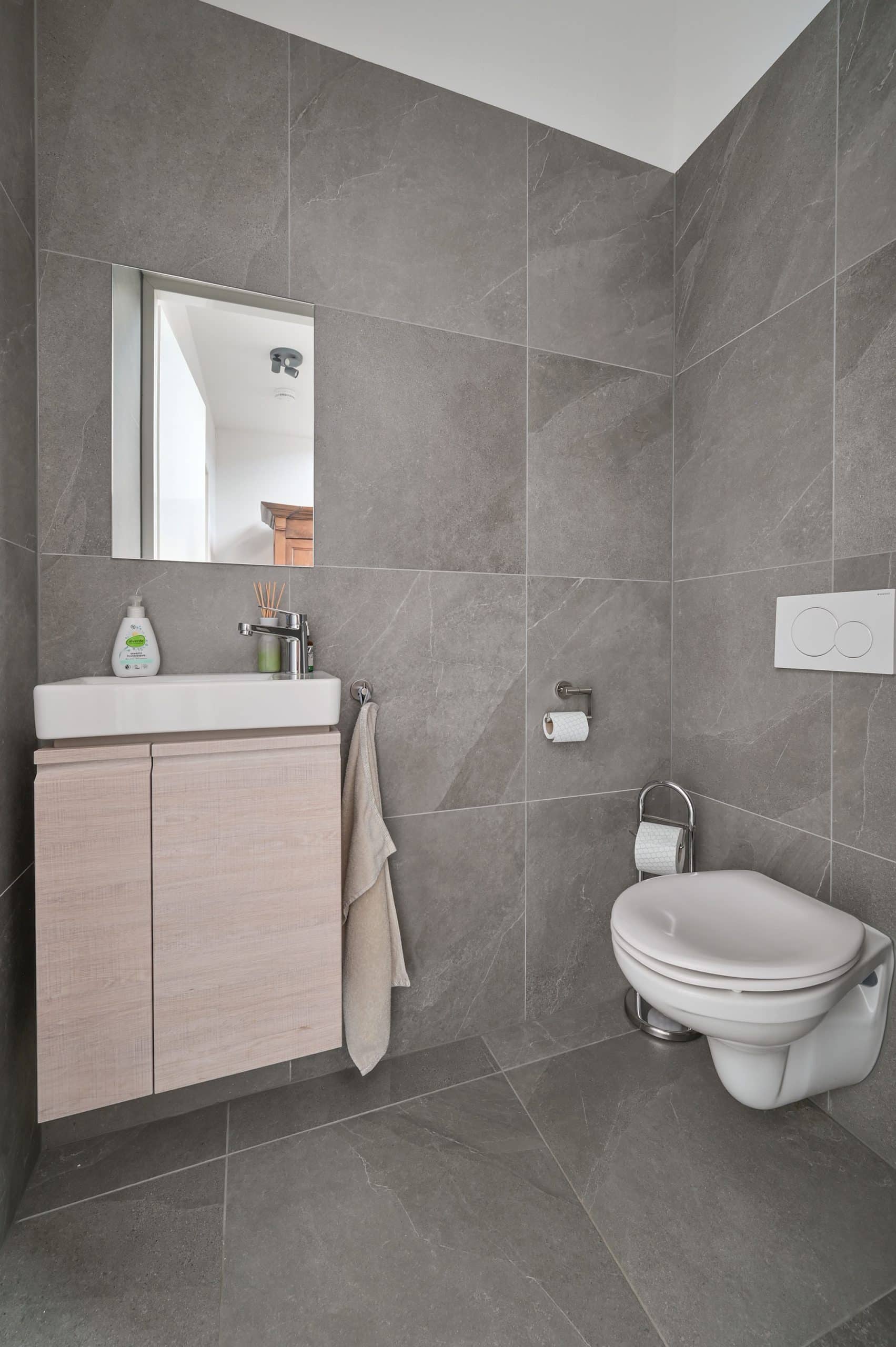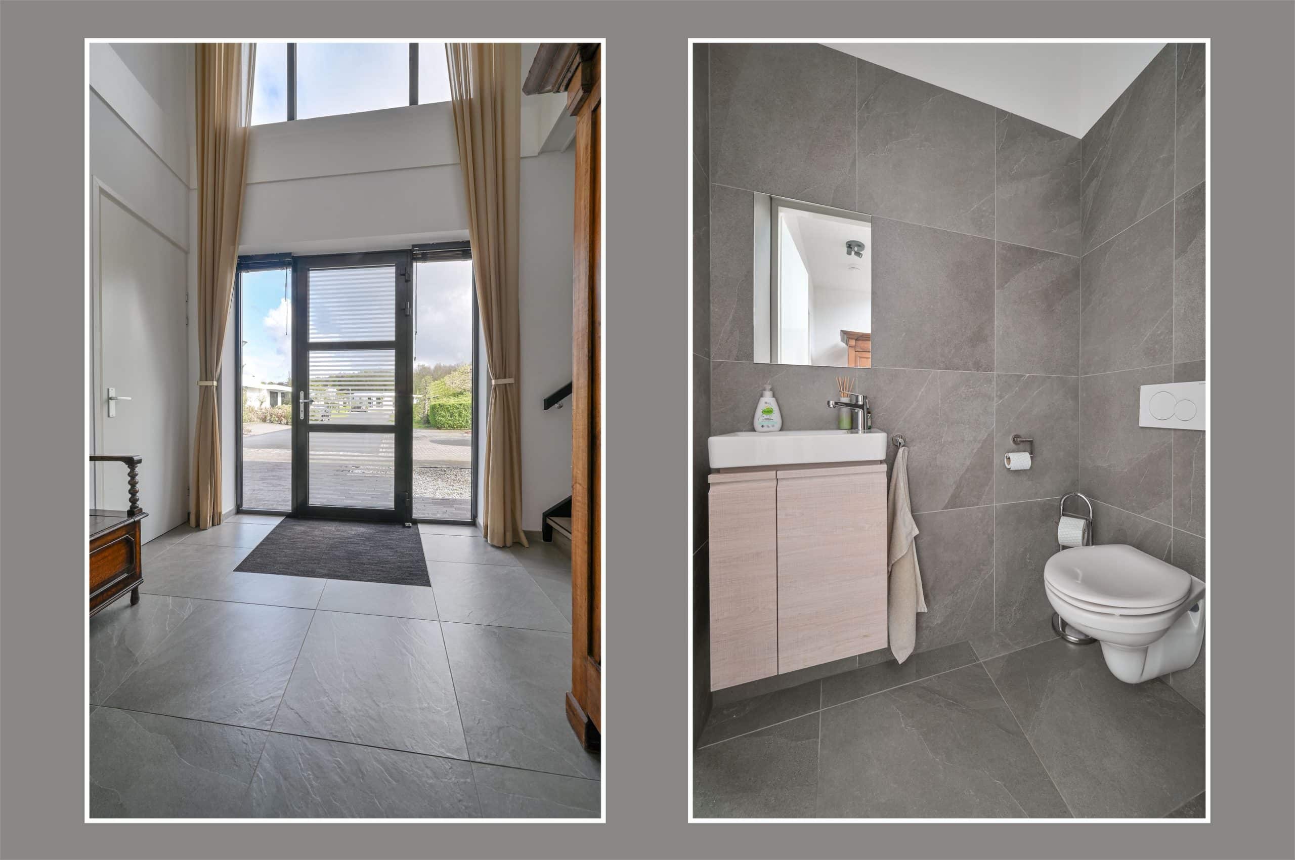 Inloopdouche, dubbel wasmeubel, ligbad, toilet en vloerverwarming
