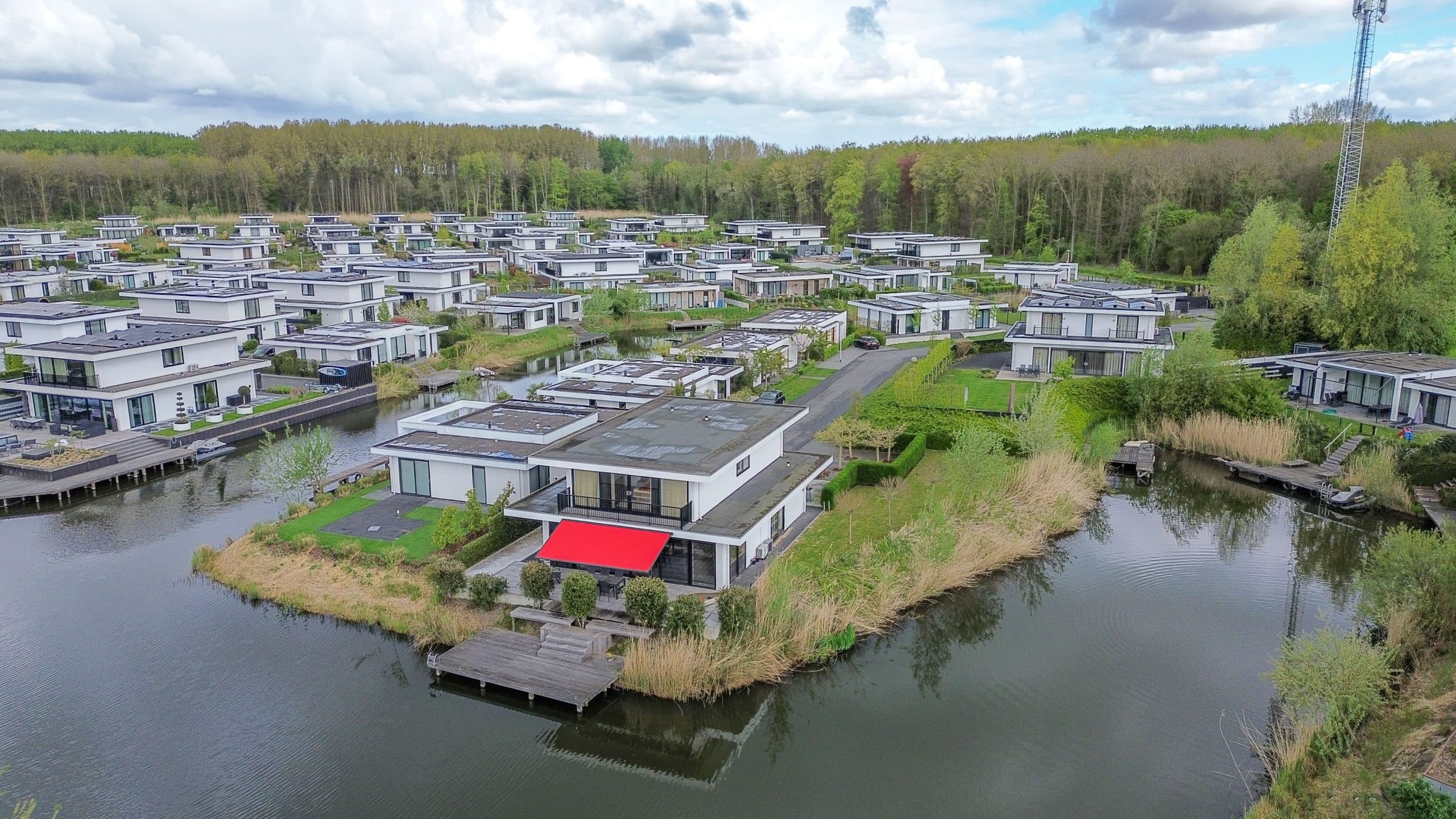 Aan bosrand, aan rustige weg, aan vaarwater, aan water, in bosrijke omgeving en vrij uitzicht.