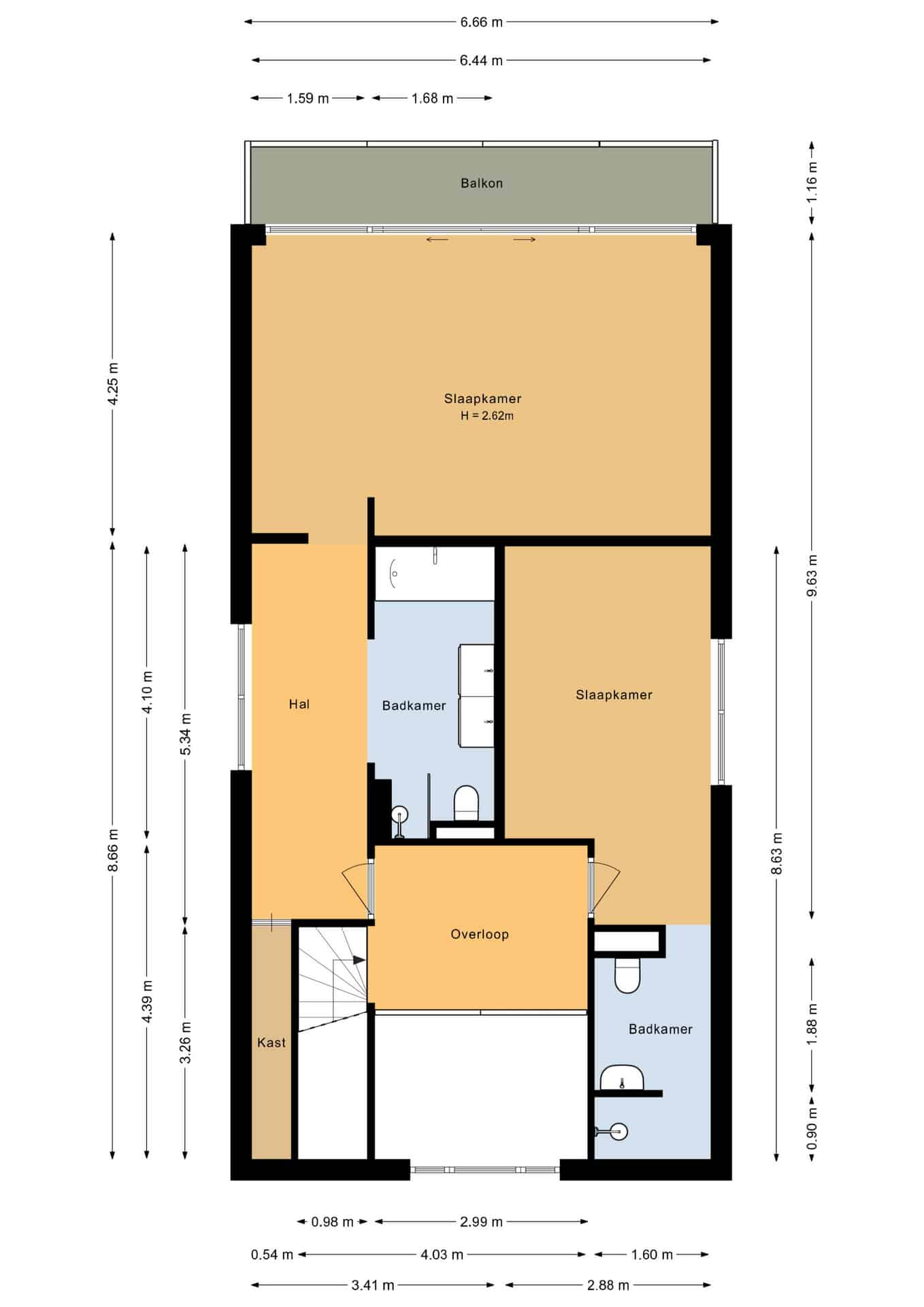 3 badkamers en 1 apart toilet